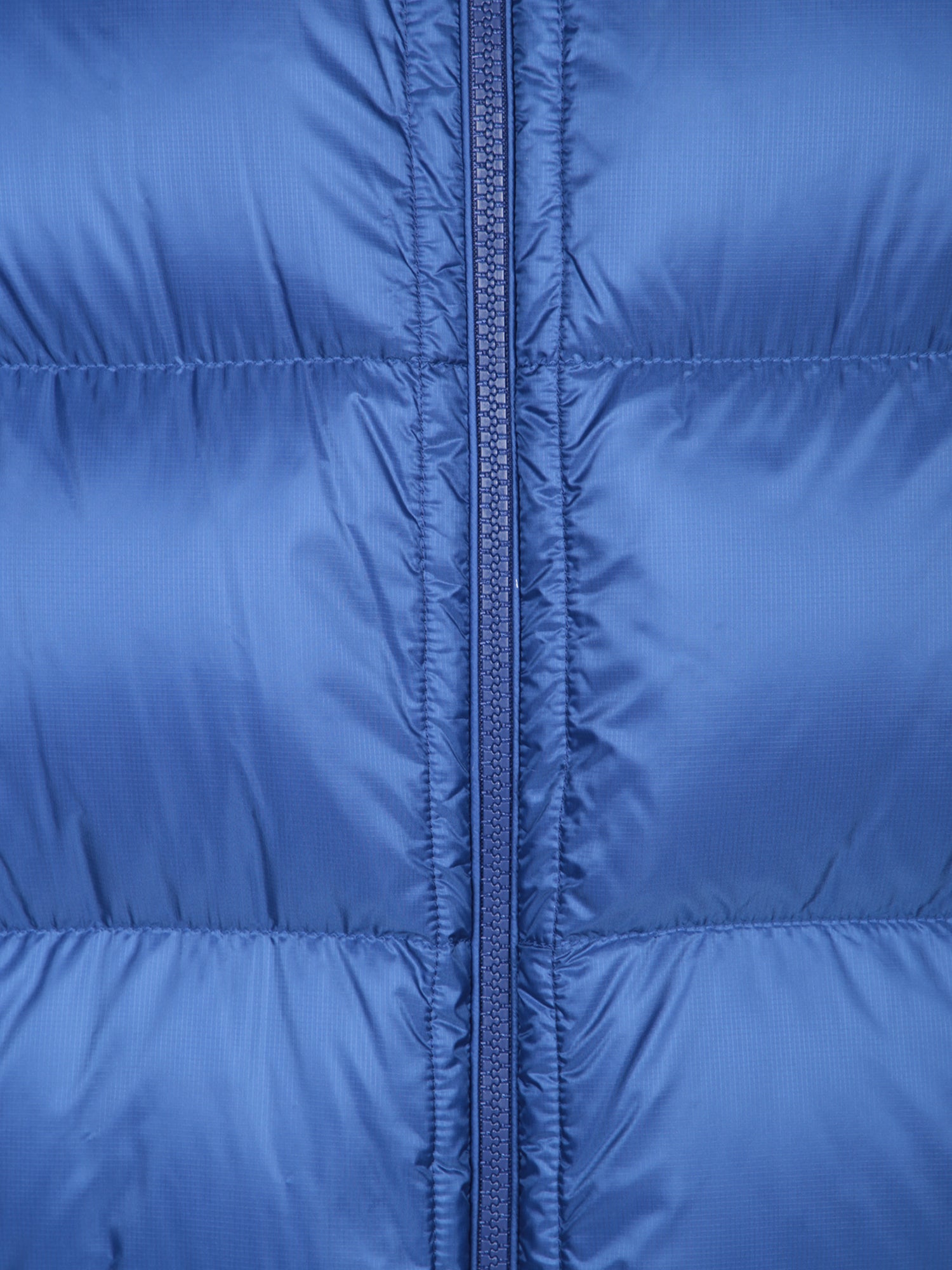 Full-zip hooded jacket. Nylon exterior and interior, zippered pockets.