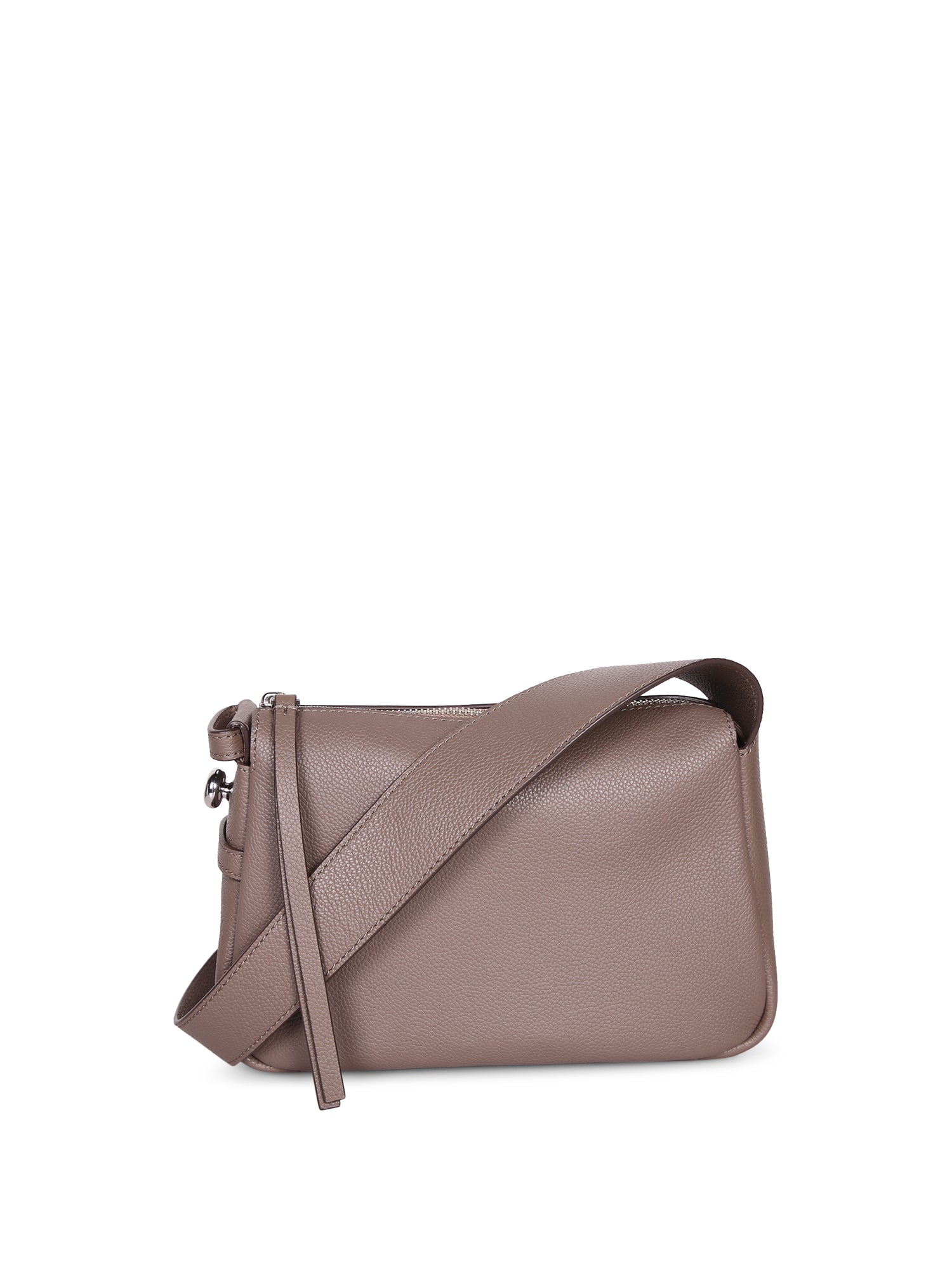 Adjustable and removable shoulder strap. Top zip closure. Tonal metal hardware.