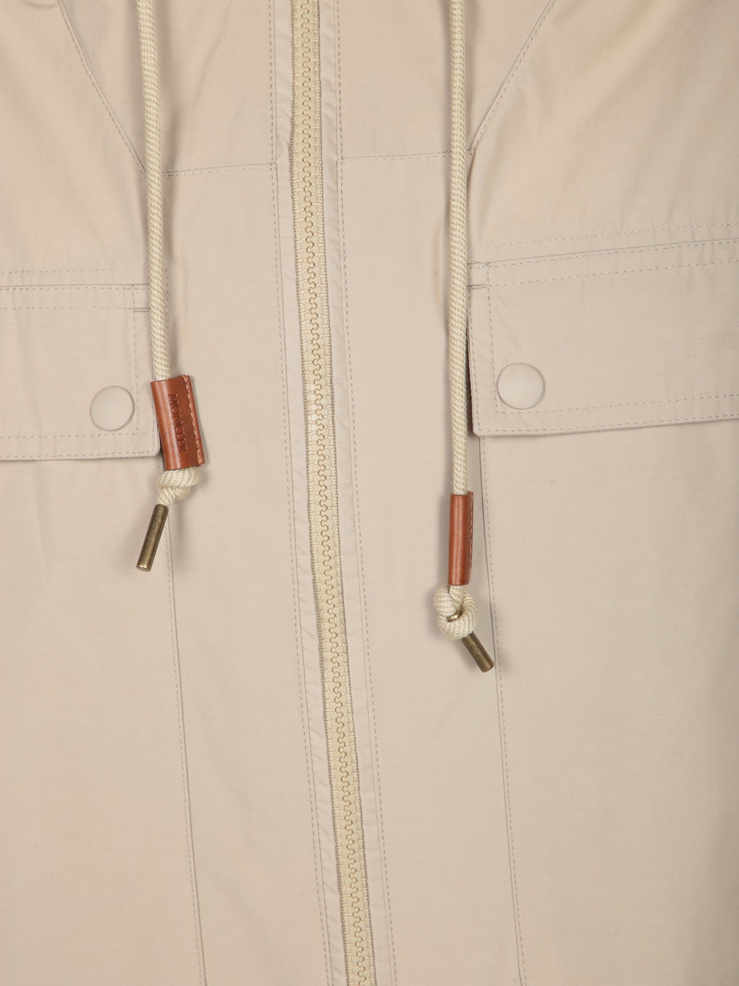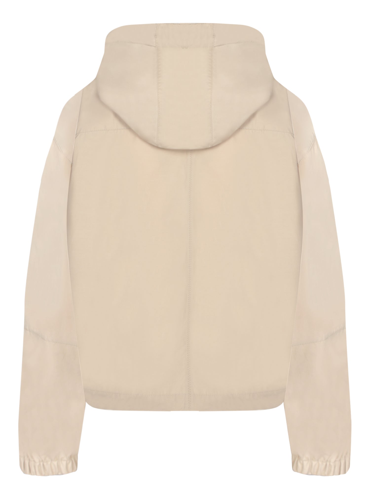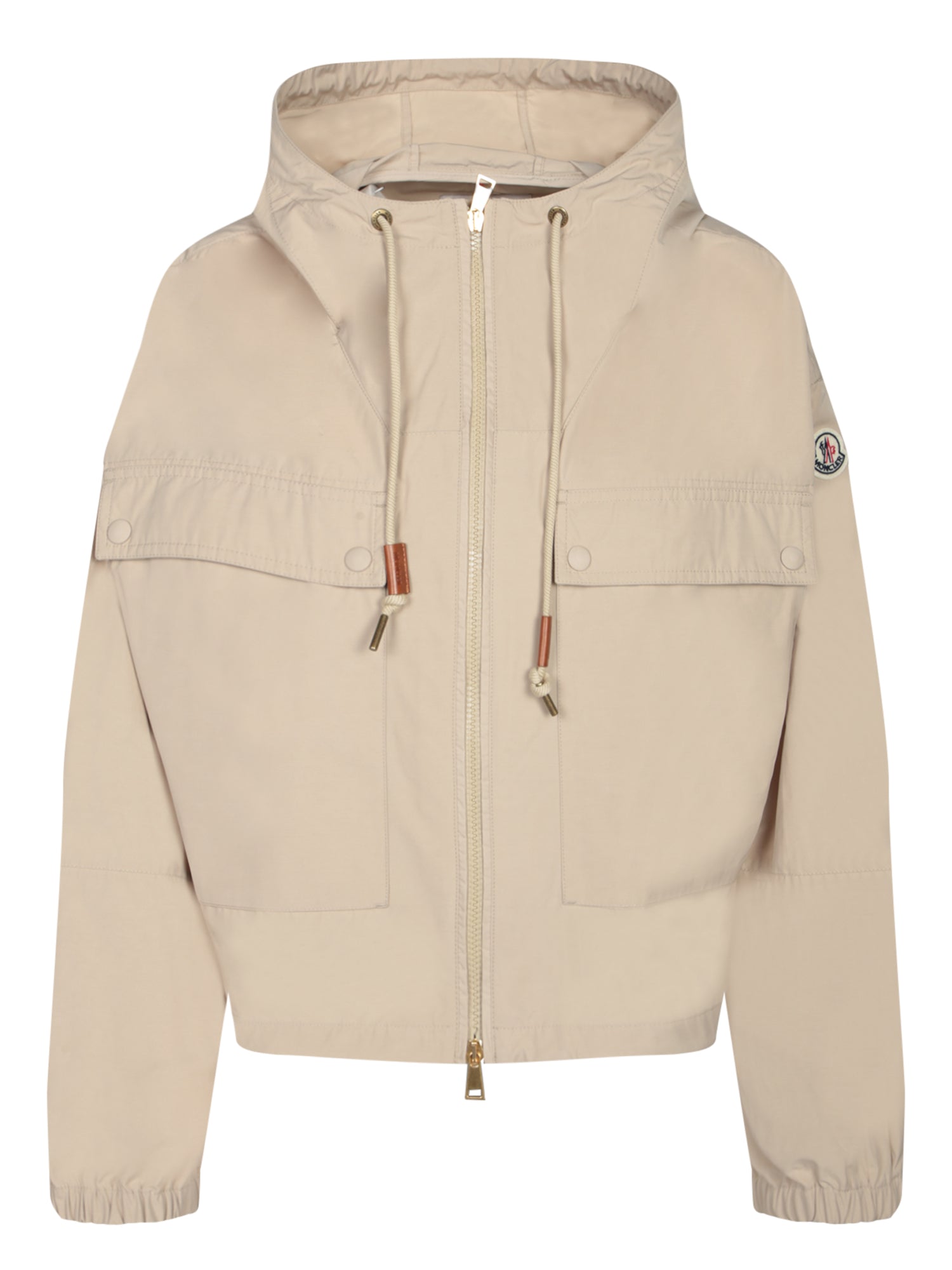 This Moncler Sauvan short jacket in premium beige technical fabric is perfect for a refined yet casual look. It's finished with functional details such as custom zippers and the iconic logo on the left sleeve.
