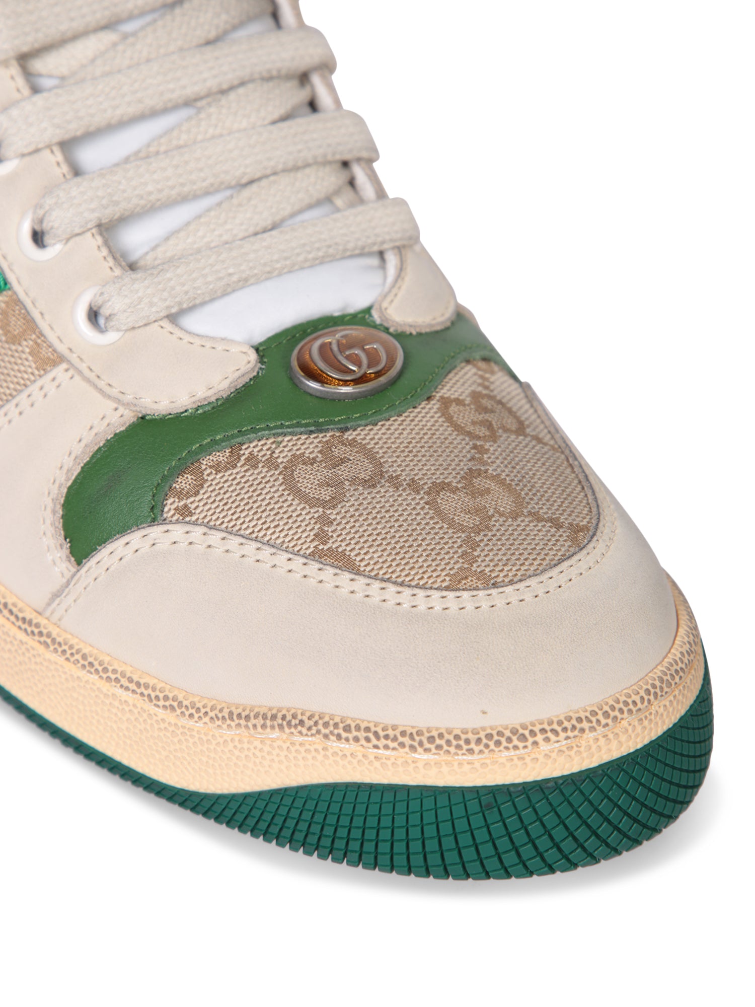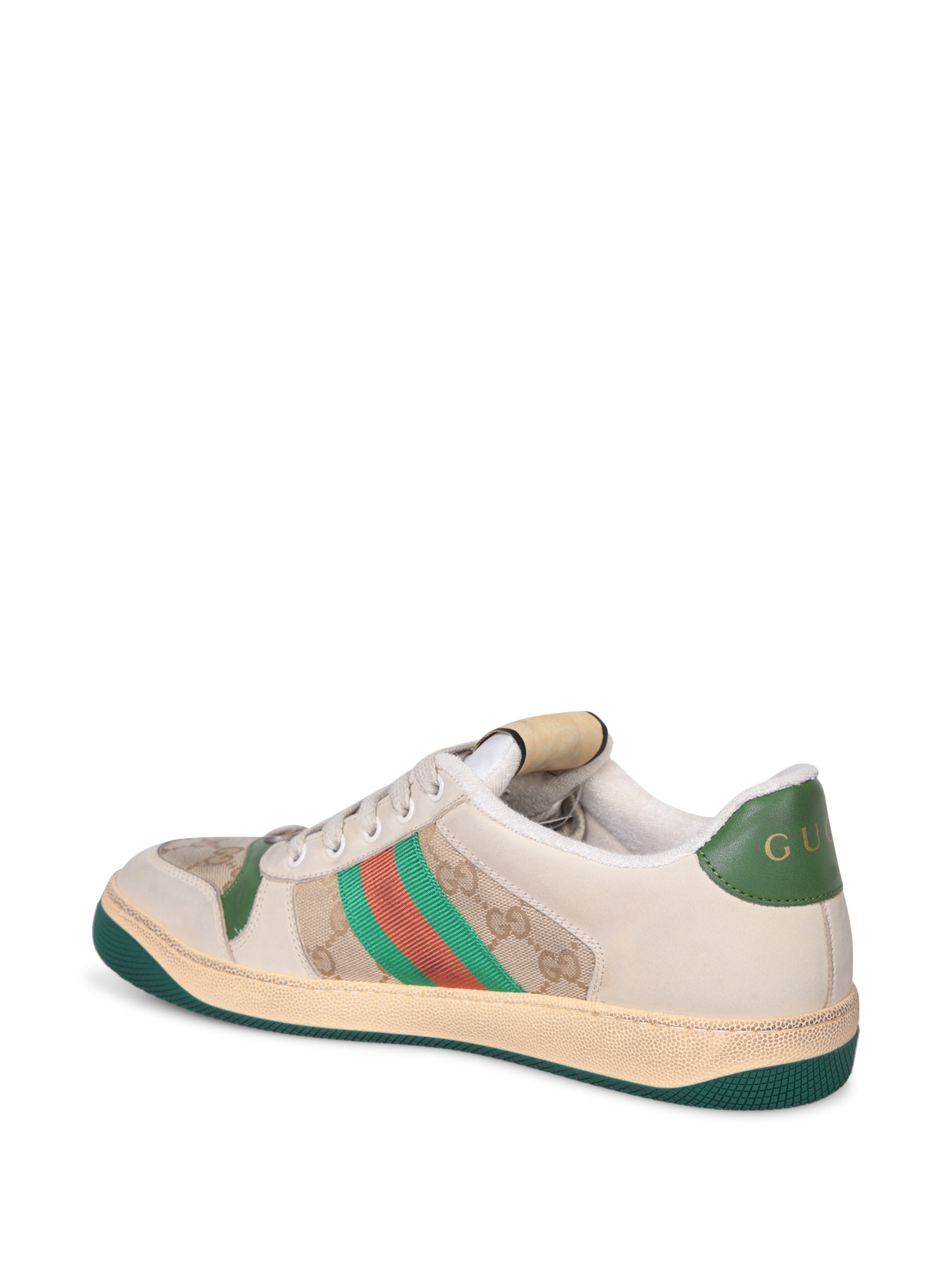 Le sneakers Screener firmate Gucci prendono ispirazione dalle classiche scarpe da ginnastica degli anni '70, mostrano un design vintage autentico