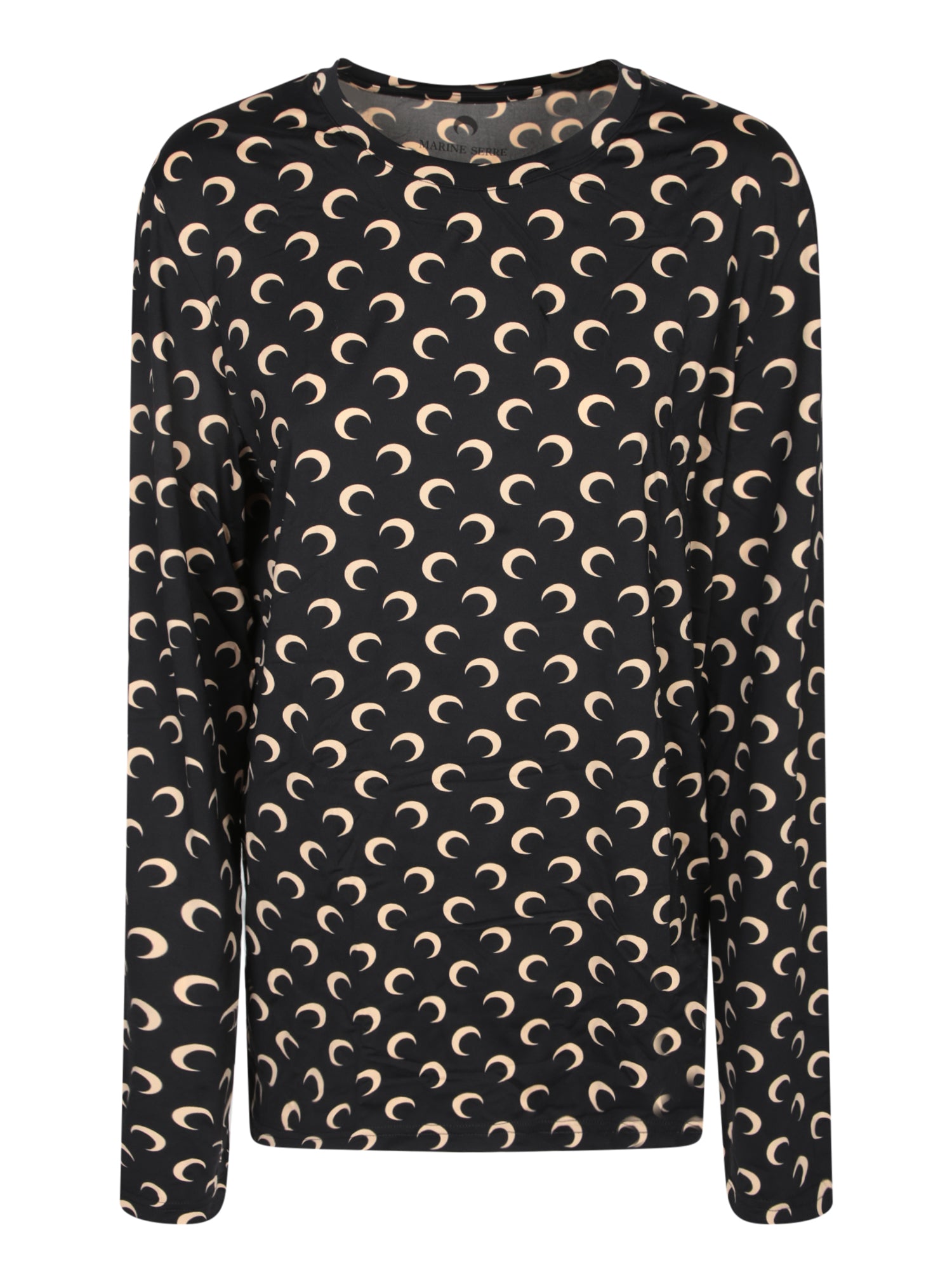 Long sleeve t-shirt. Crew neck. Contrasting moon print.