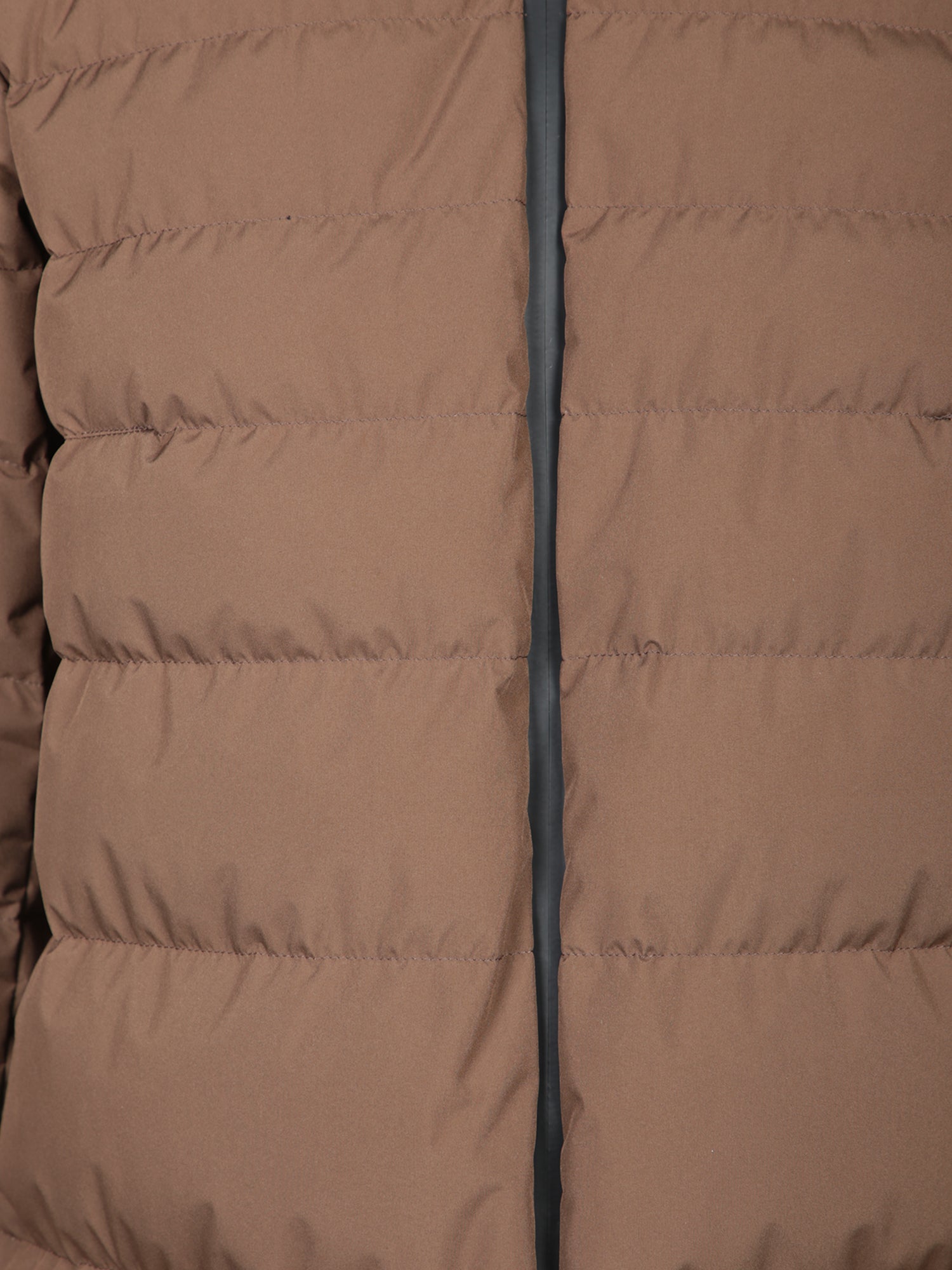 Padded jacket with hood. Front zip closure. Elasticated cuffs.