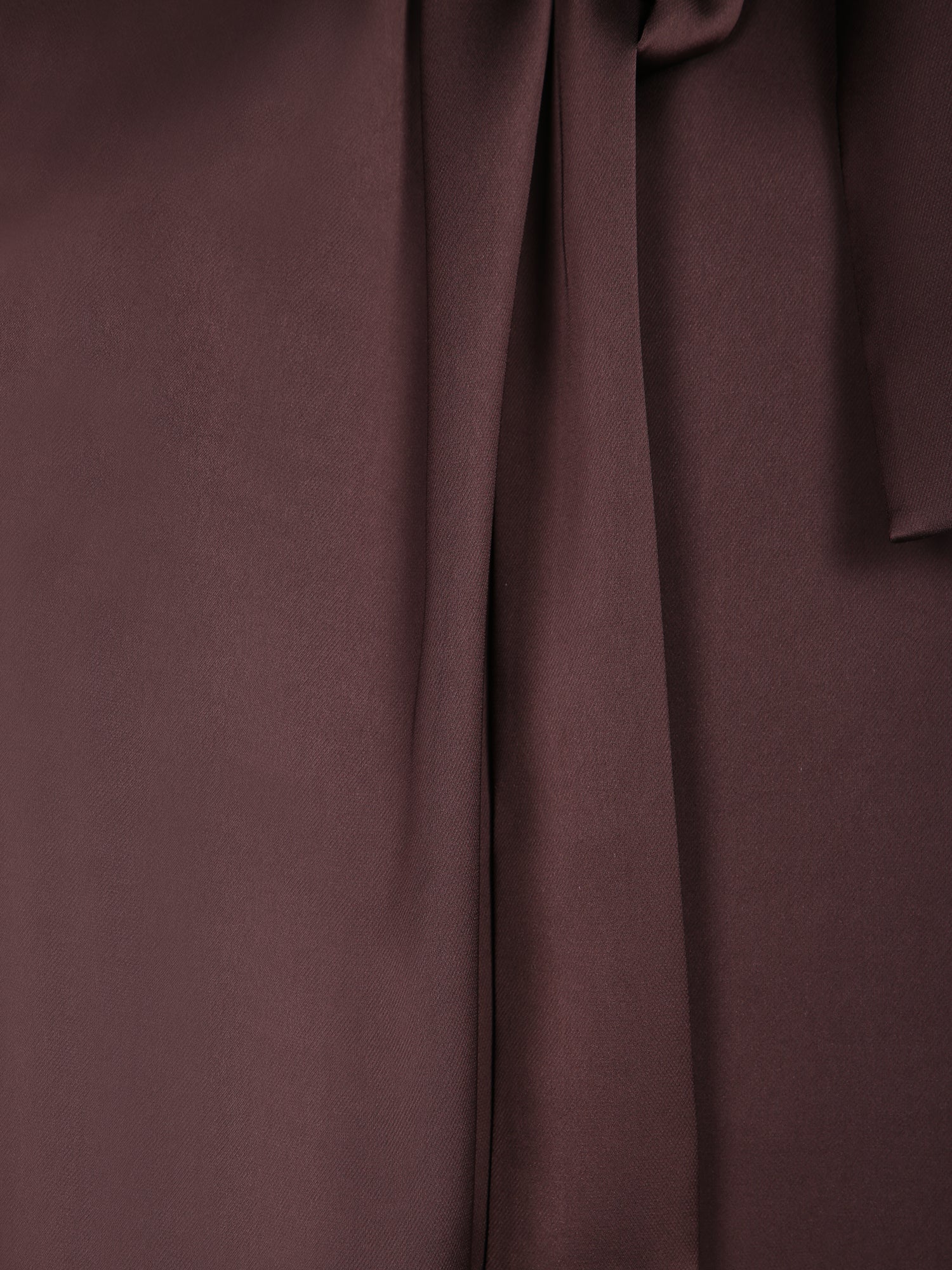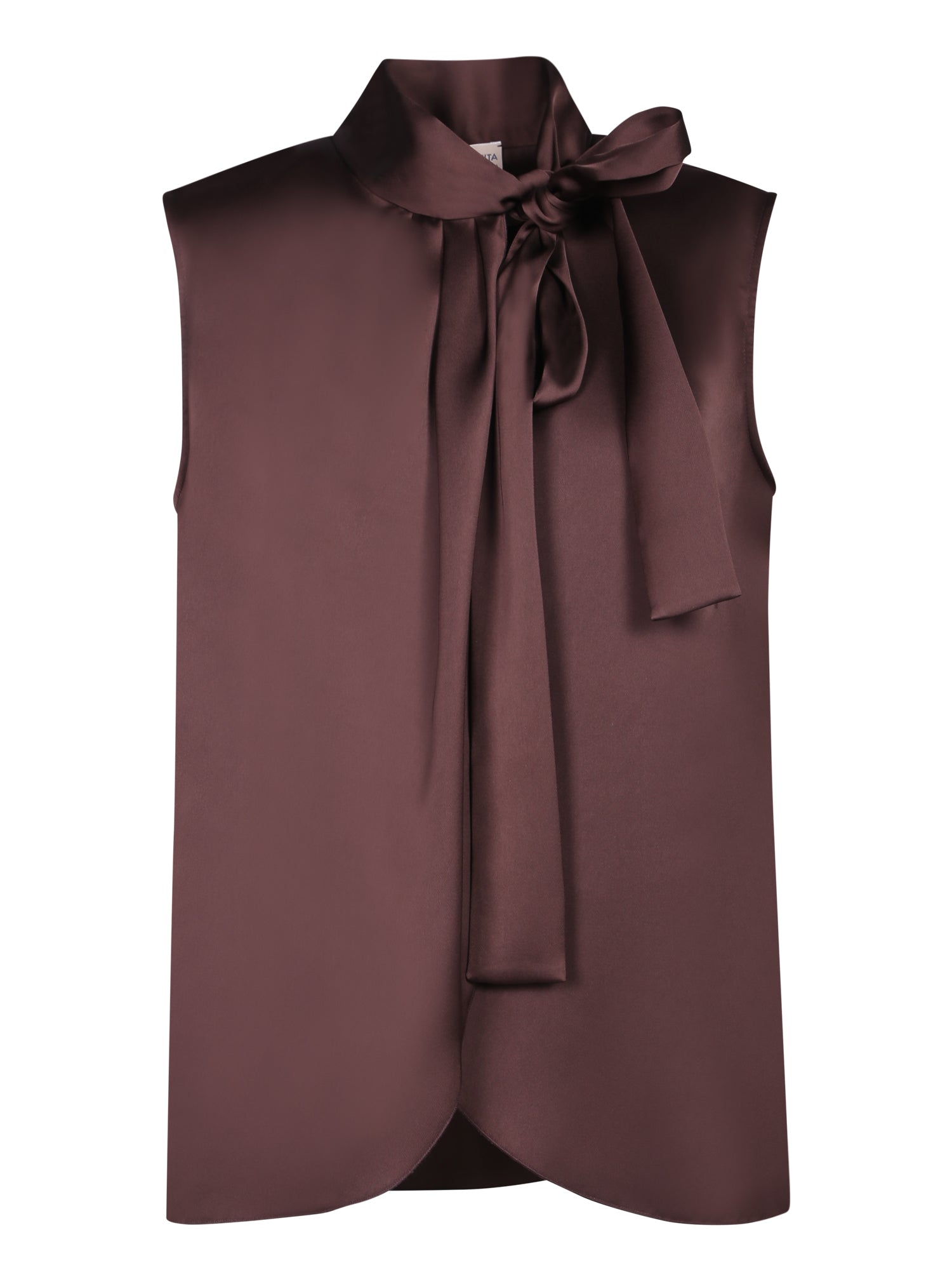 Sleeveless top. Adjustable necktie. Asymmetric hem.