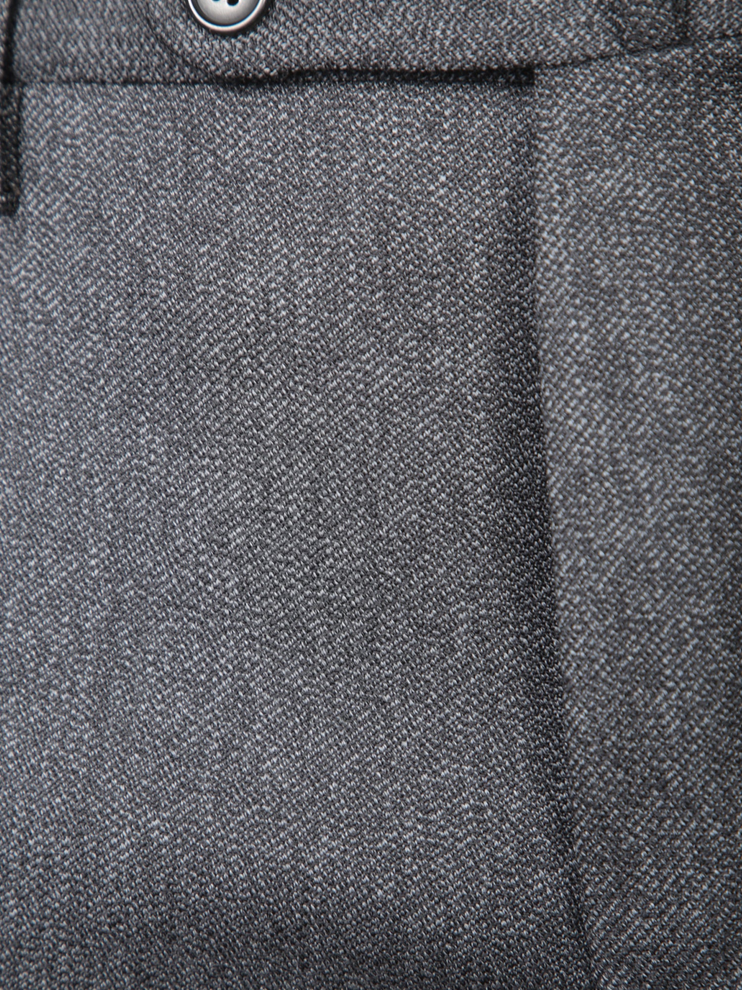 Slim fit design, zip and button closure, front pockets and rear welt pockets.