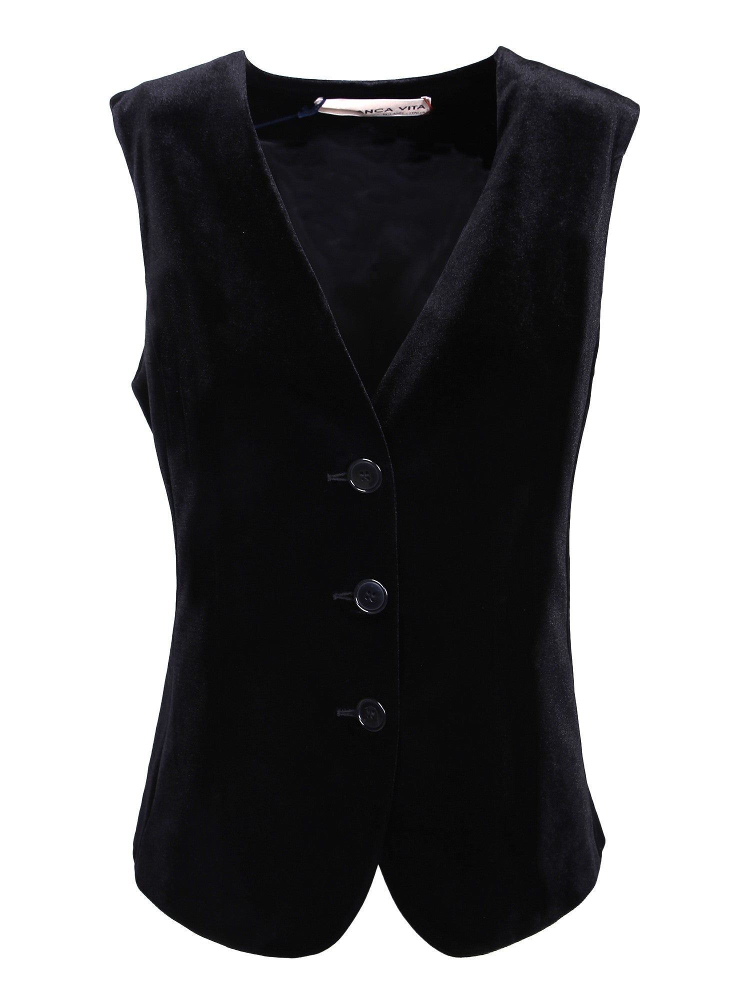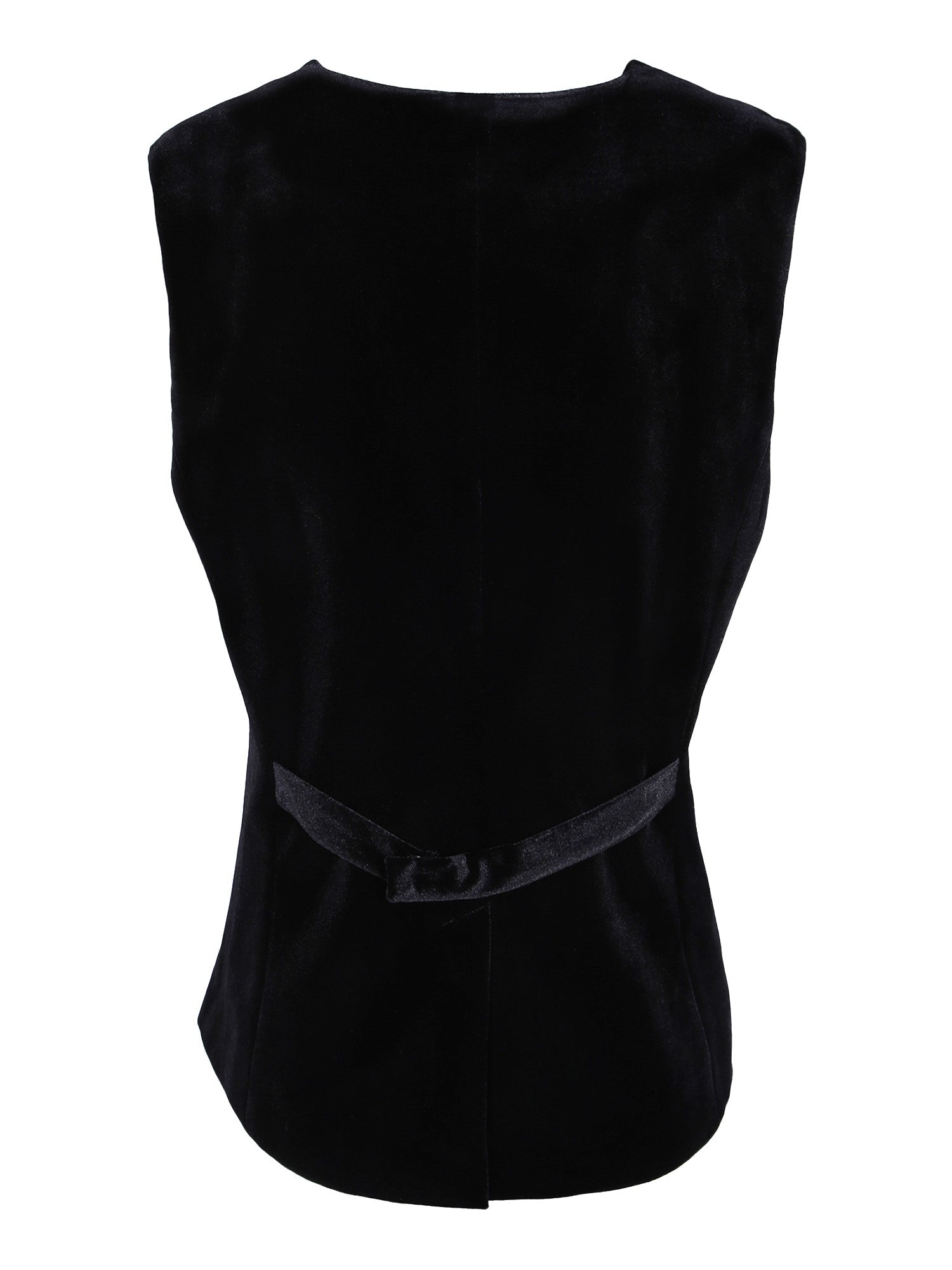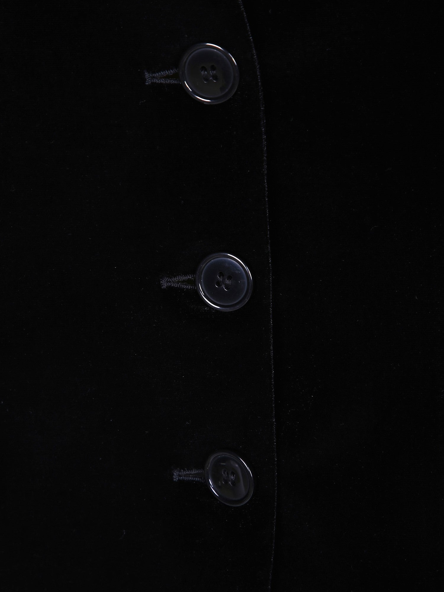 Sleeveless gilet. Smooth black velvet. Button closure.