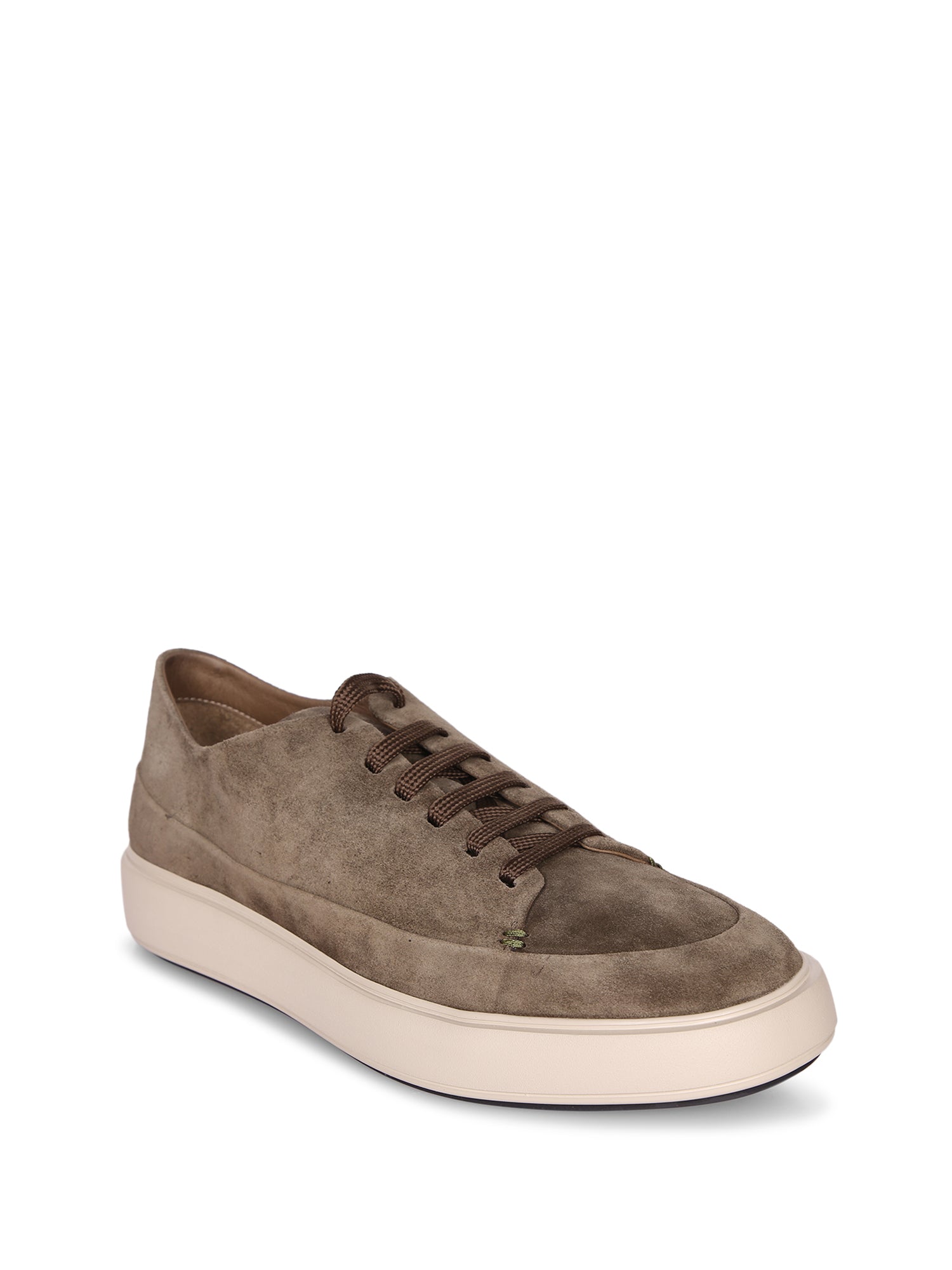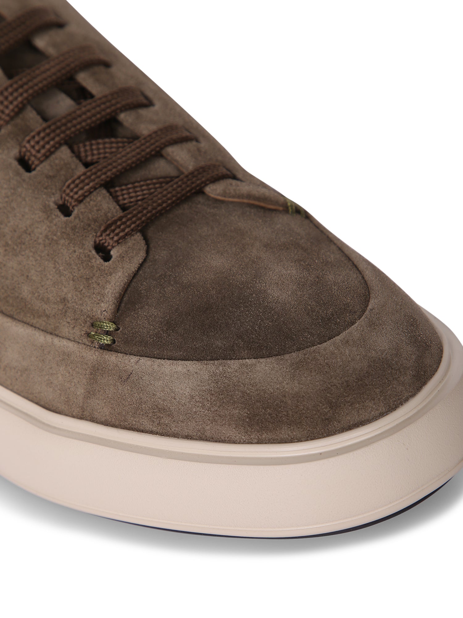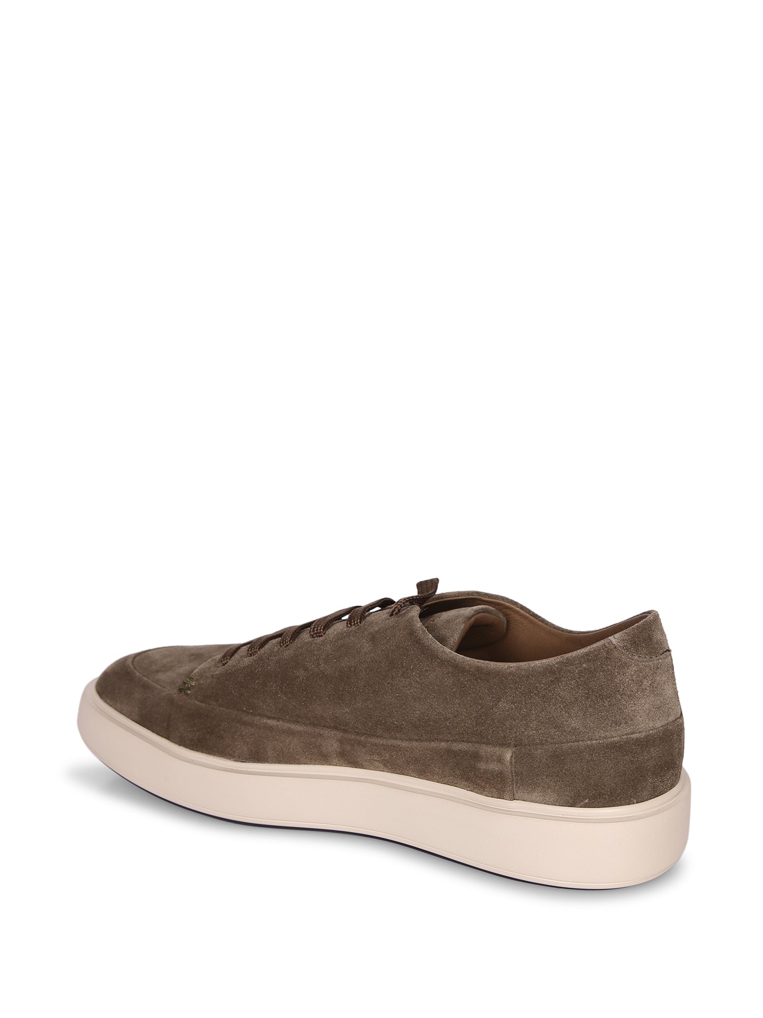 Suede sneakers with laces. White rubber sole, minimalist logo details.