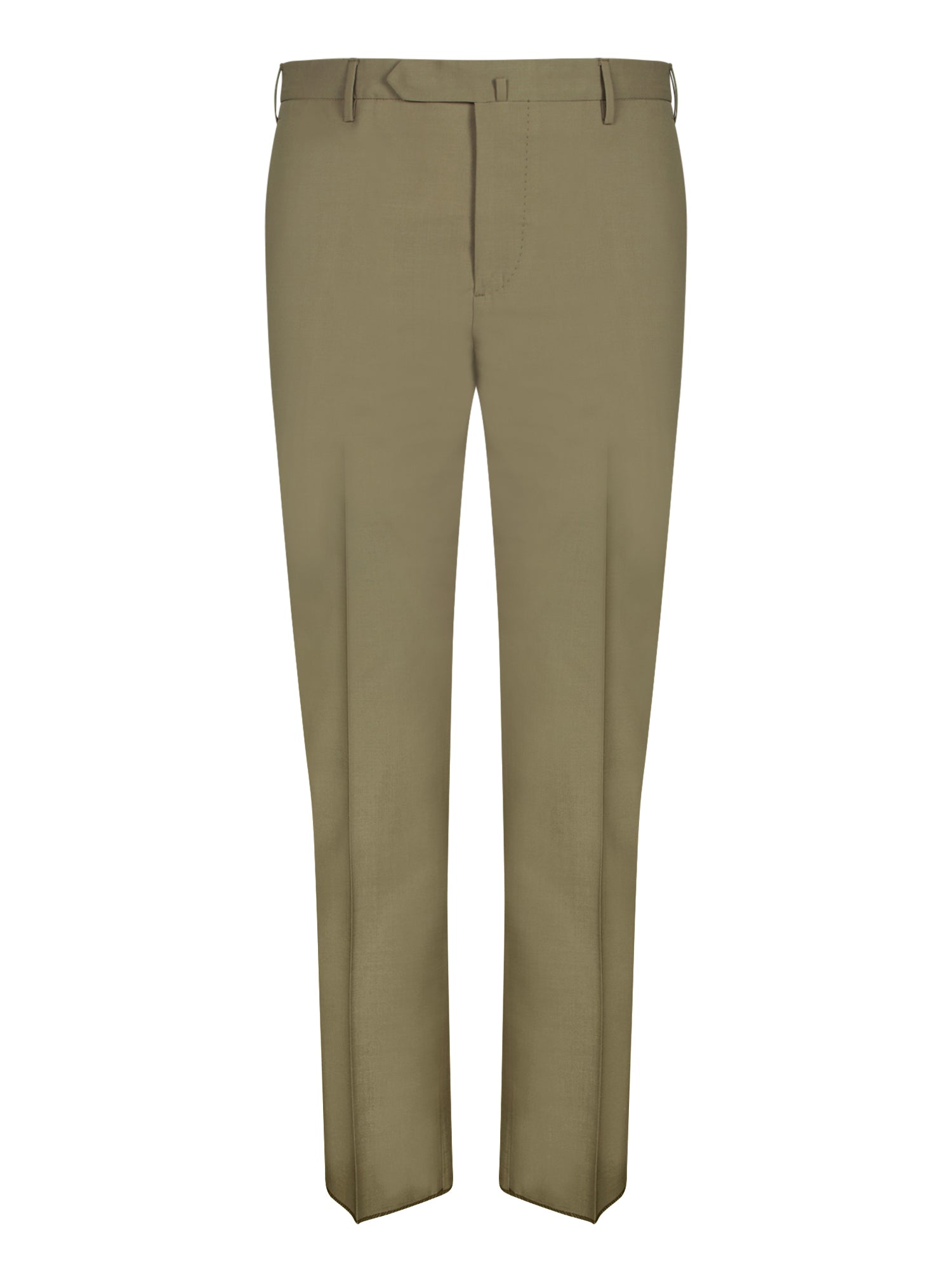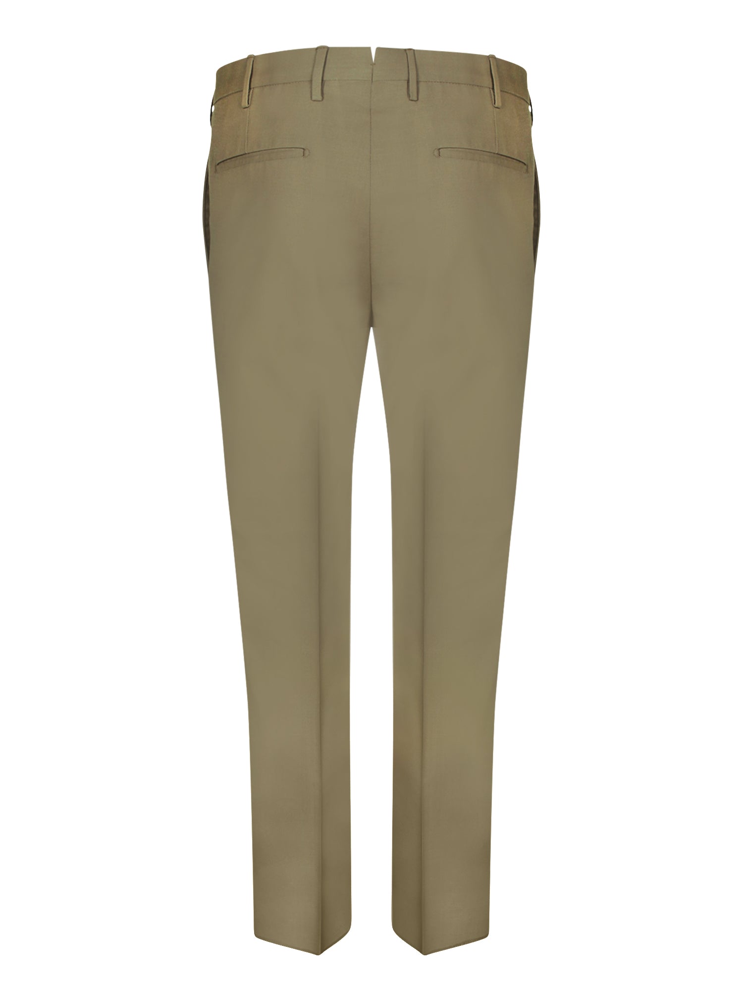 Front closure with zipper and button. Belt loops. Side and back pockets.