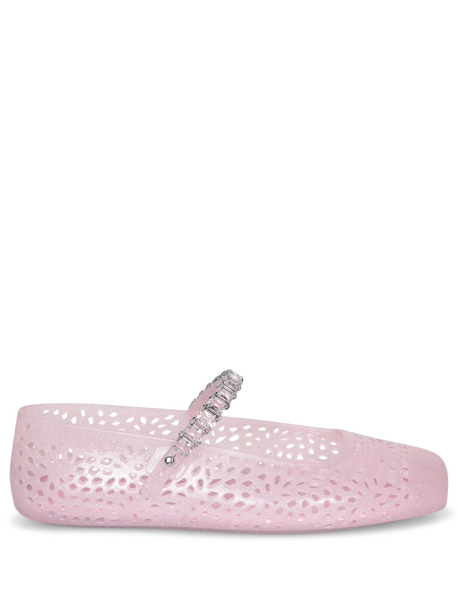 Embodying both comfort and style, these Jimmy Choo ballet flats feature innovative translucent PVC material that offers a delicately contemporary allure, highlighted by a sparkling crystal accent.