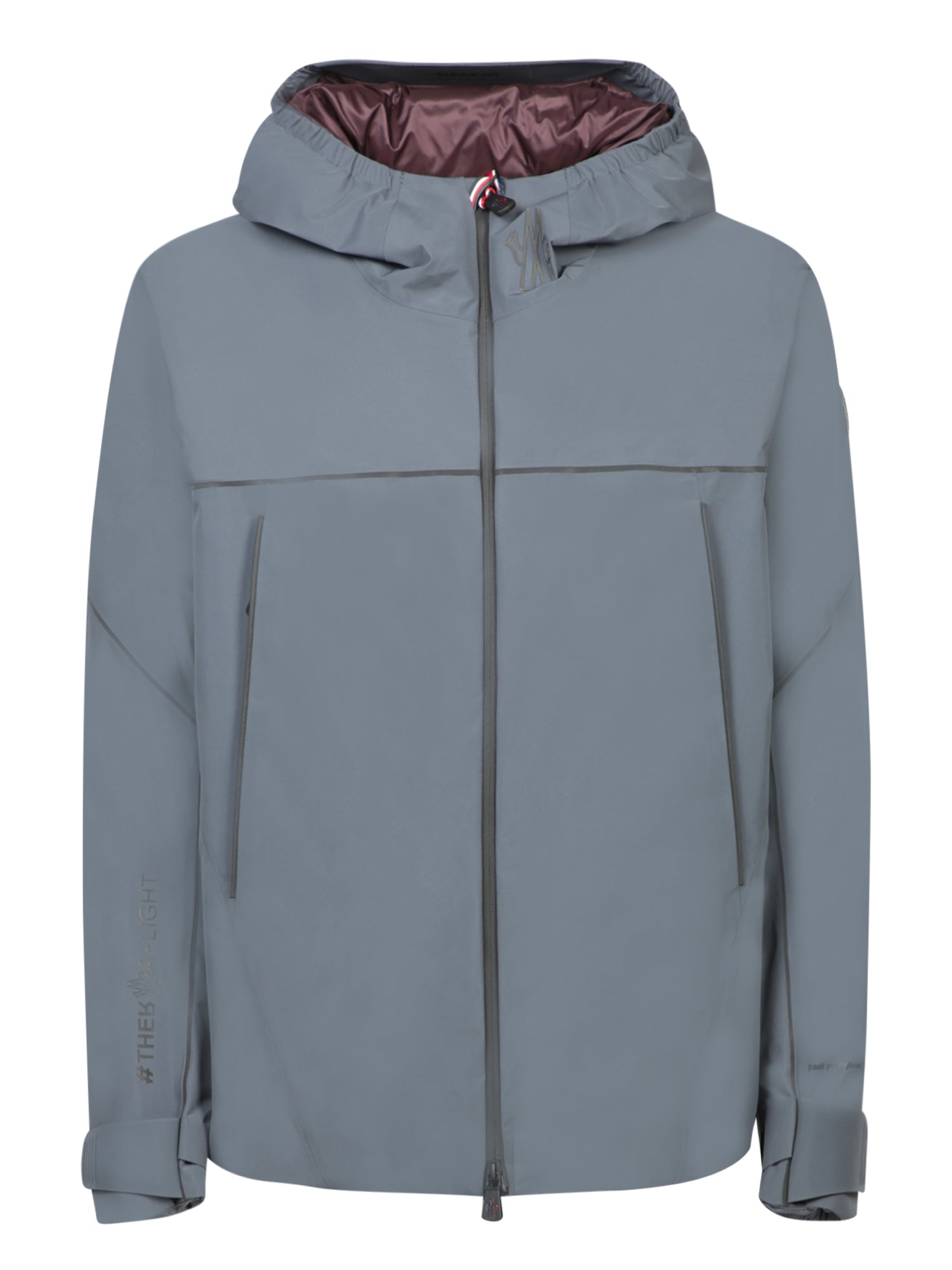 Technical jacket with integrated hood, zip closure, invisible zip pockets. Moncler logo on the chest.