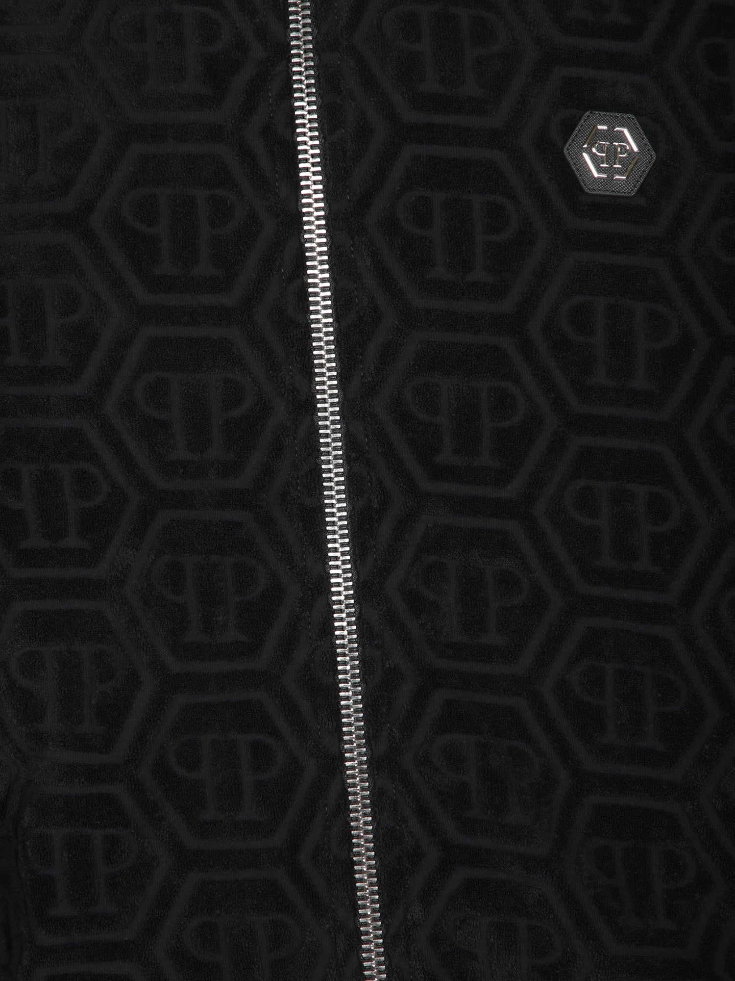 Technical fabric sweatshirt with PP monogram logo. Front zip closure. Ribbed collar, cuffs and hem.