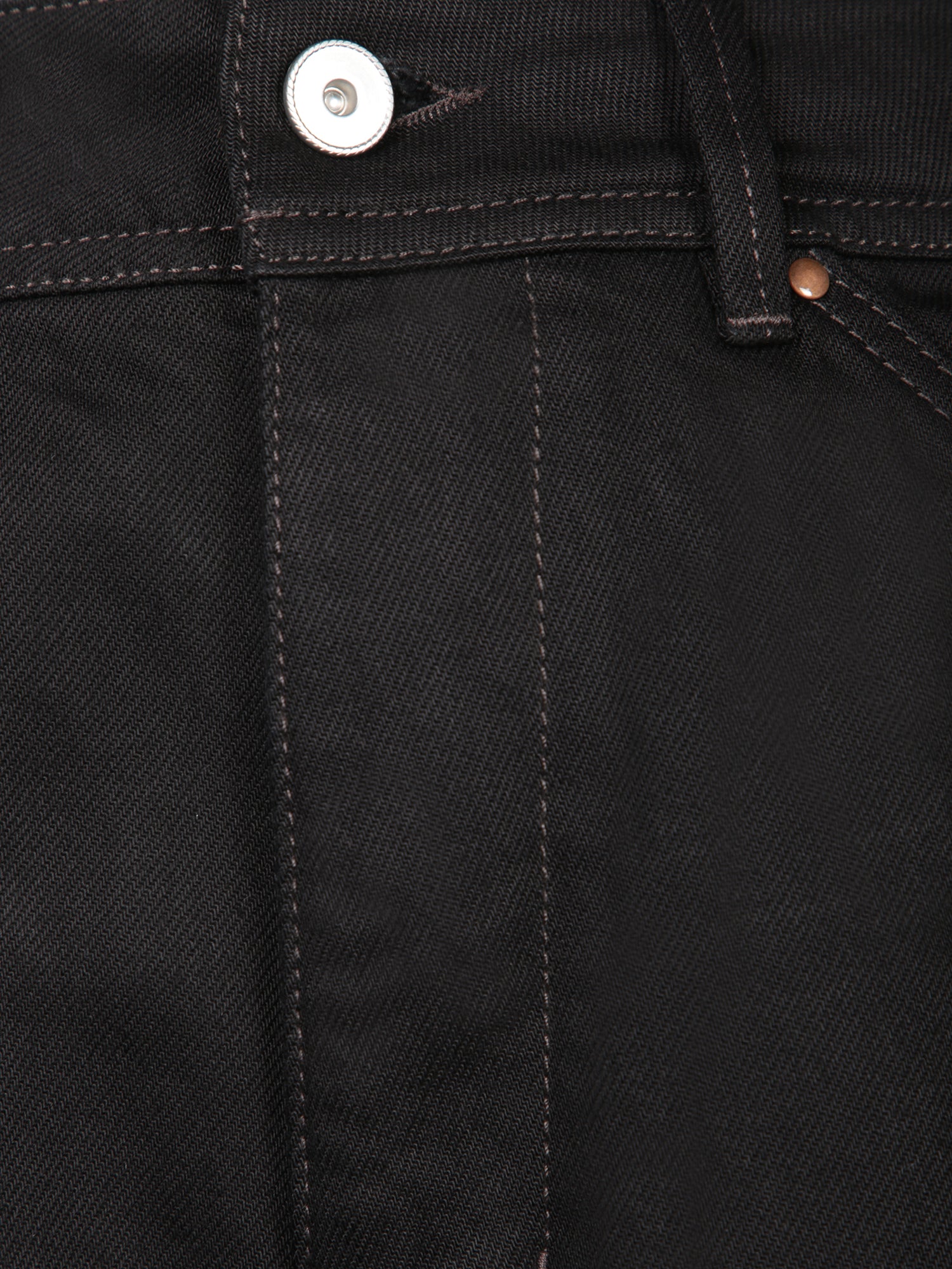 Twisted cut jeans. Five-pocket design. Button and zip closure.