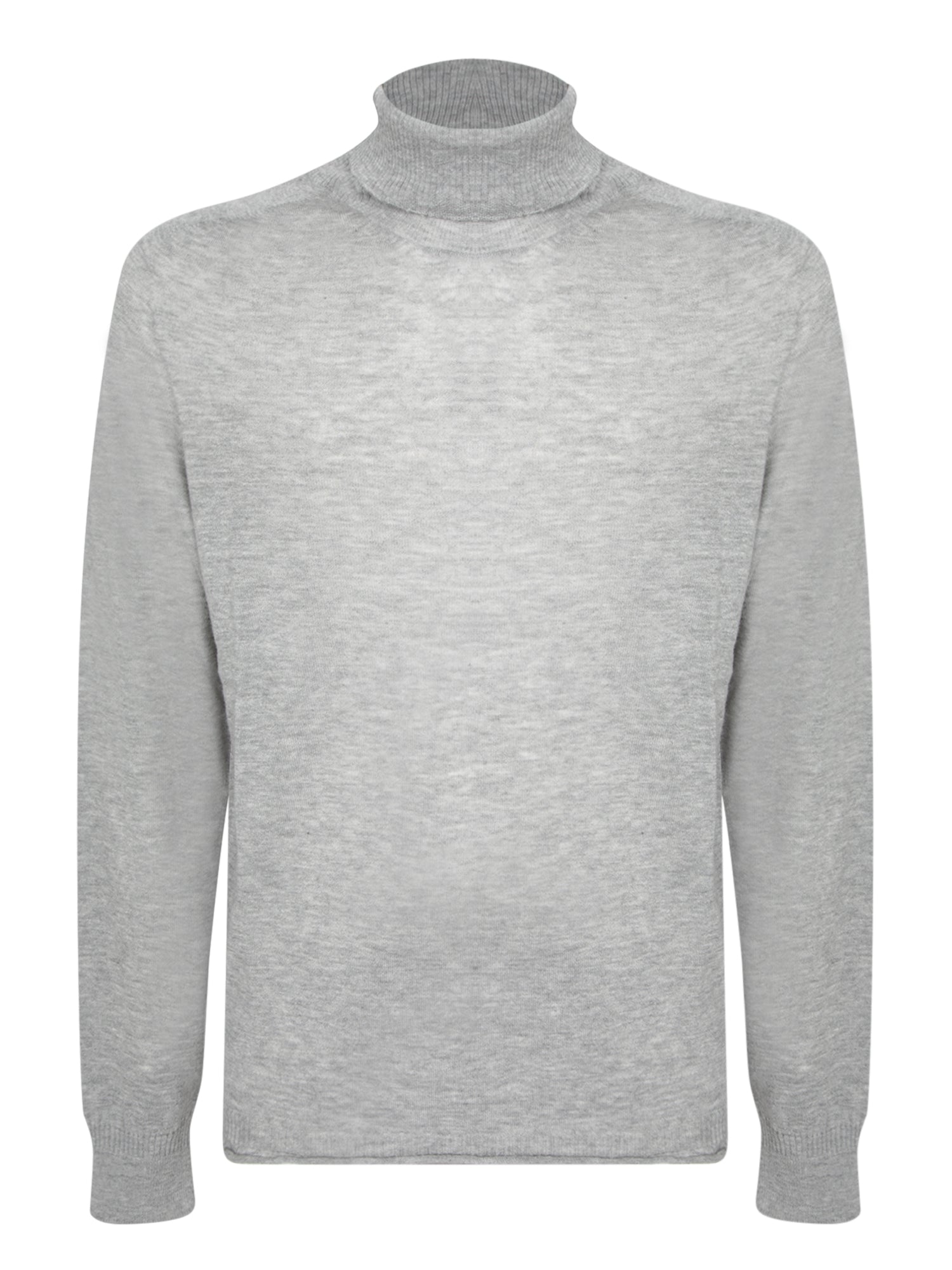 Ribbed high neck. Long sleeves. Ultrafine wool fabric.