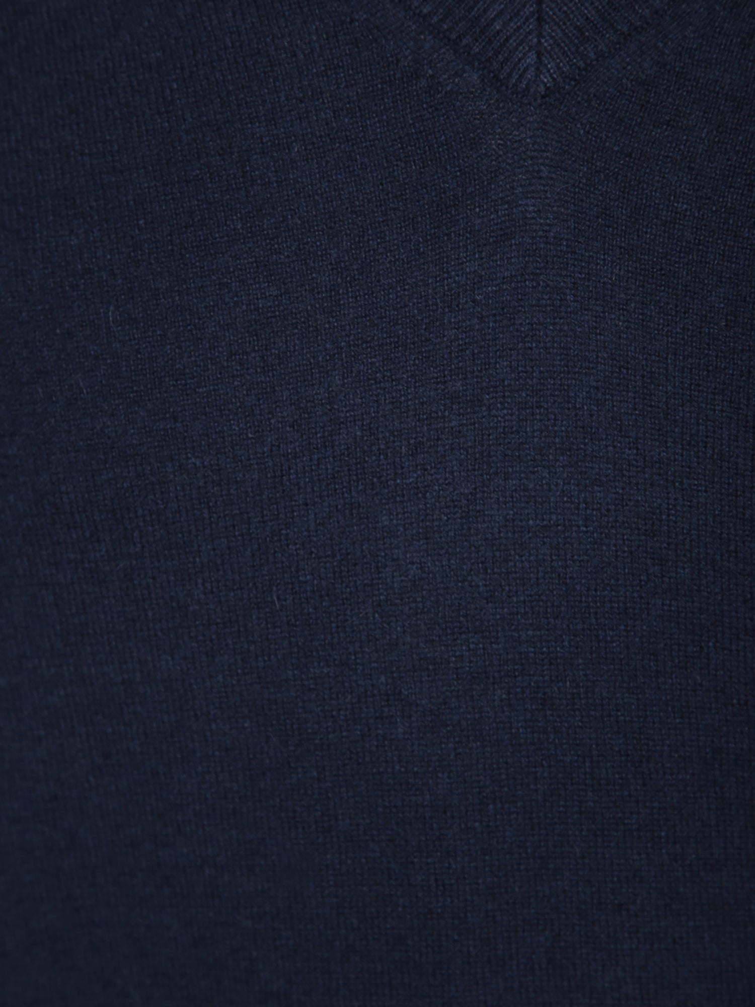 Scollo a V. Maniche lunghe. Dettagli a coste. Cuciture tono su tono. Vestibilità regolare. Orlo dritto. Colore: blu scuro