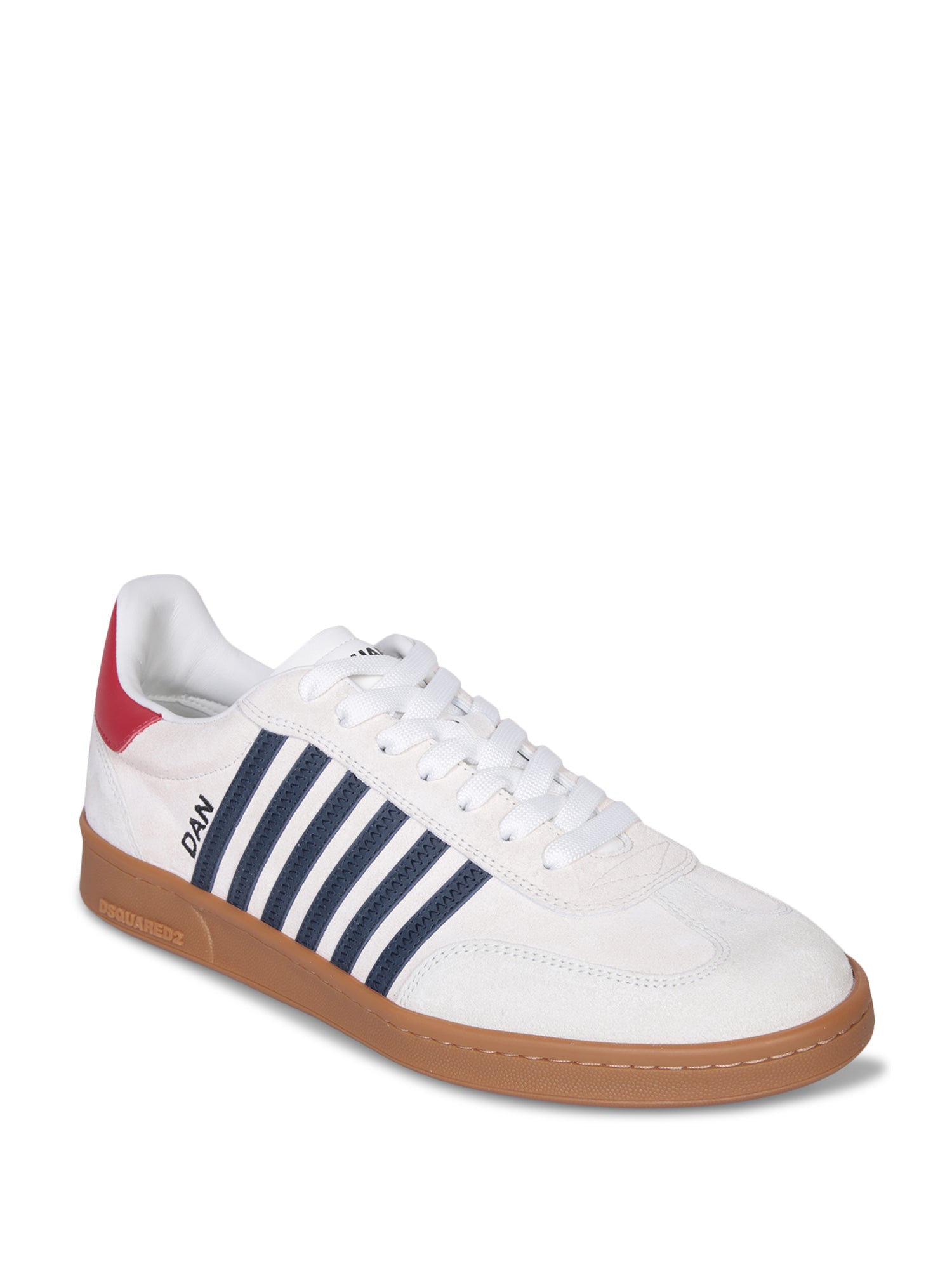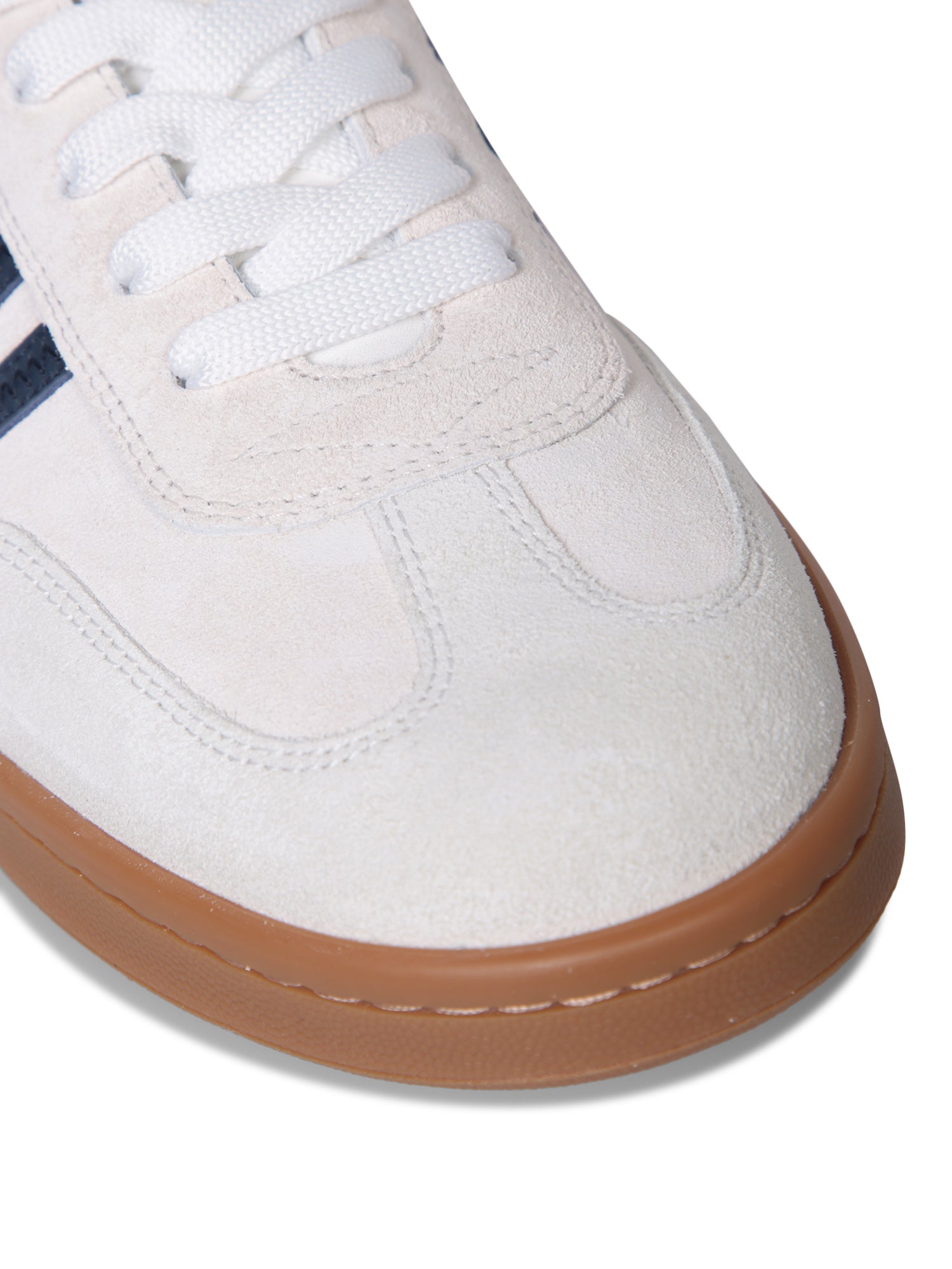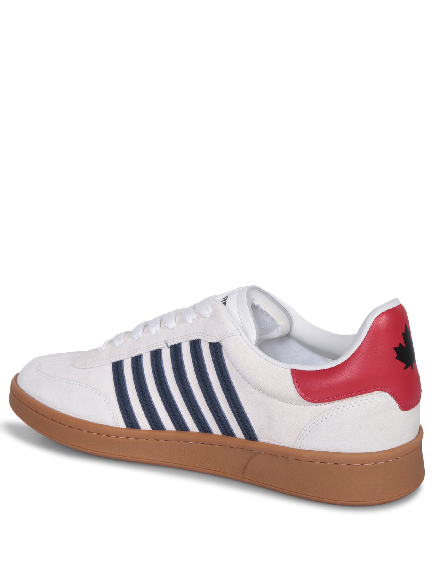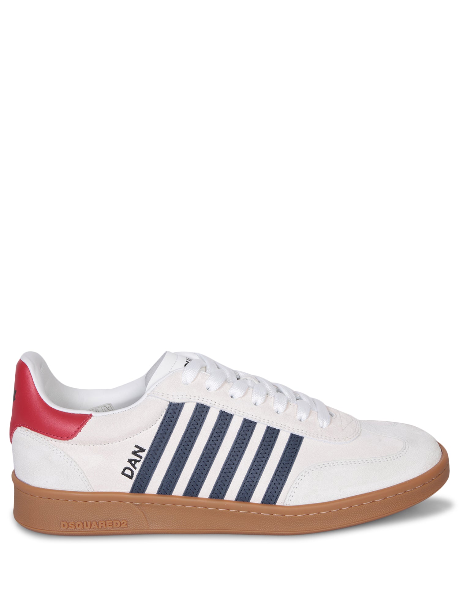 Suede and fabric upper. Rubber sole. Red leather heel detail.
