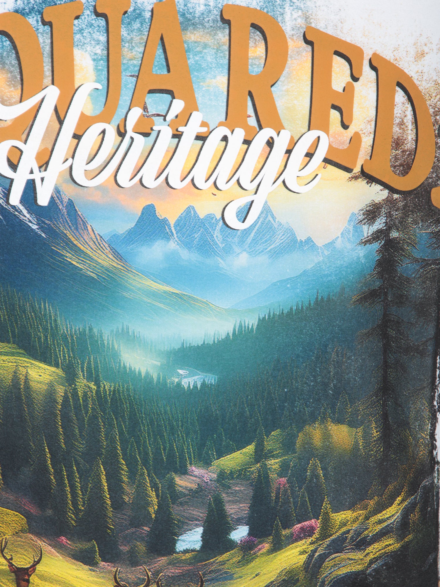 Long sleeves, frontal graphic print, rib knit crewneck.