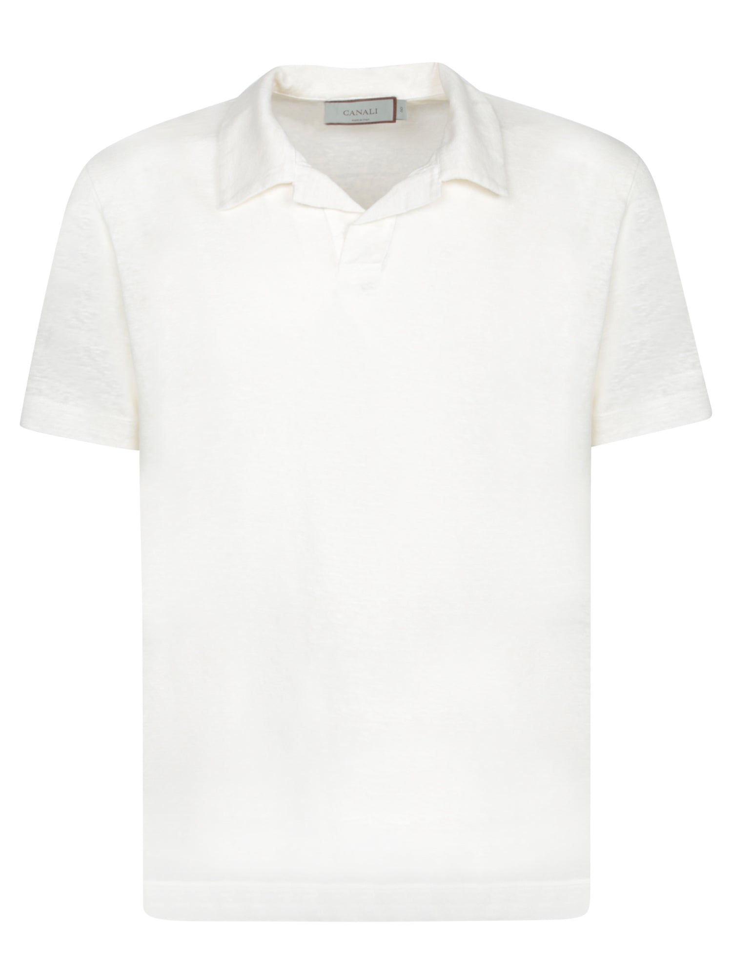 This elegant Canali polo in white linen features a relaxed cut with breathable fabric, perfect for a sophisticated yet casual look.