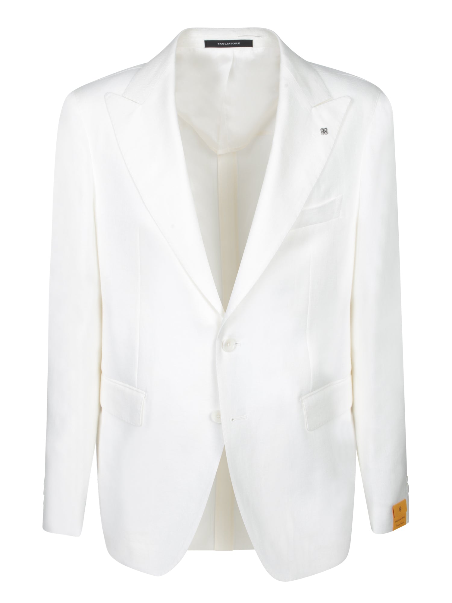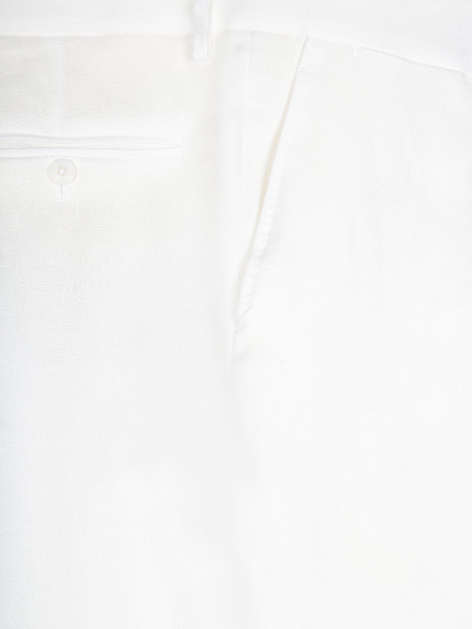 This TAGLIATORE suit, crafted in fine white linen, ensures an elegant and sophisticated appearance. The tailored fit with meticulous detailing offers a perfect fit, ideal for formal events and business meetings.