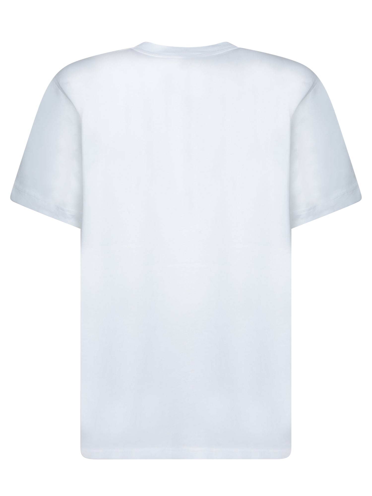 Explore a casual fashion staple with this MOSCHINO white t-shirt, featuring a prominent central logo that grabs attention. Perfect for an everyday look that stands out.