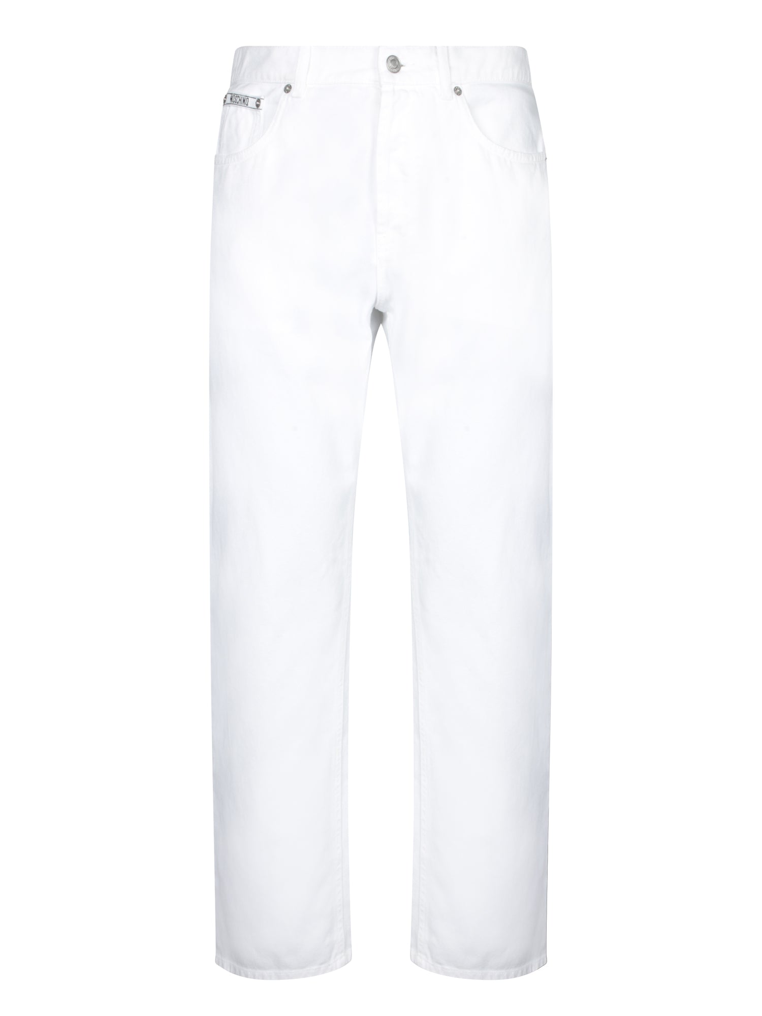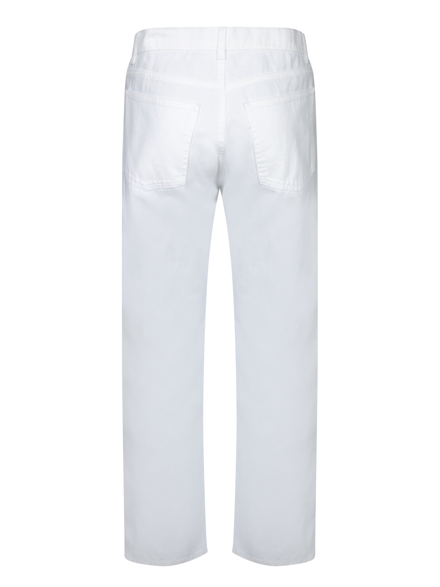 White cotton straight jeans. Zip and button closure. Front and back pockets.