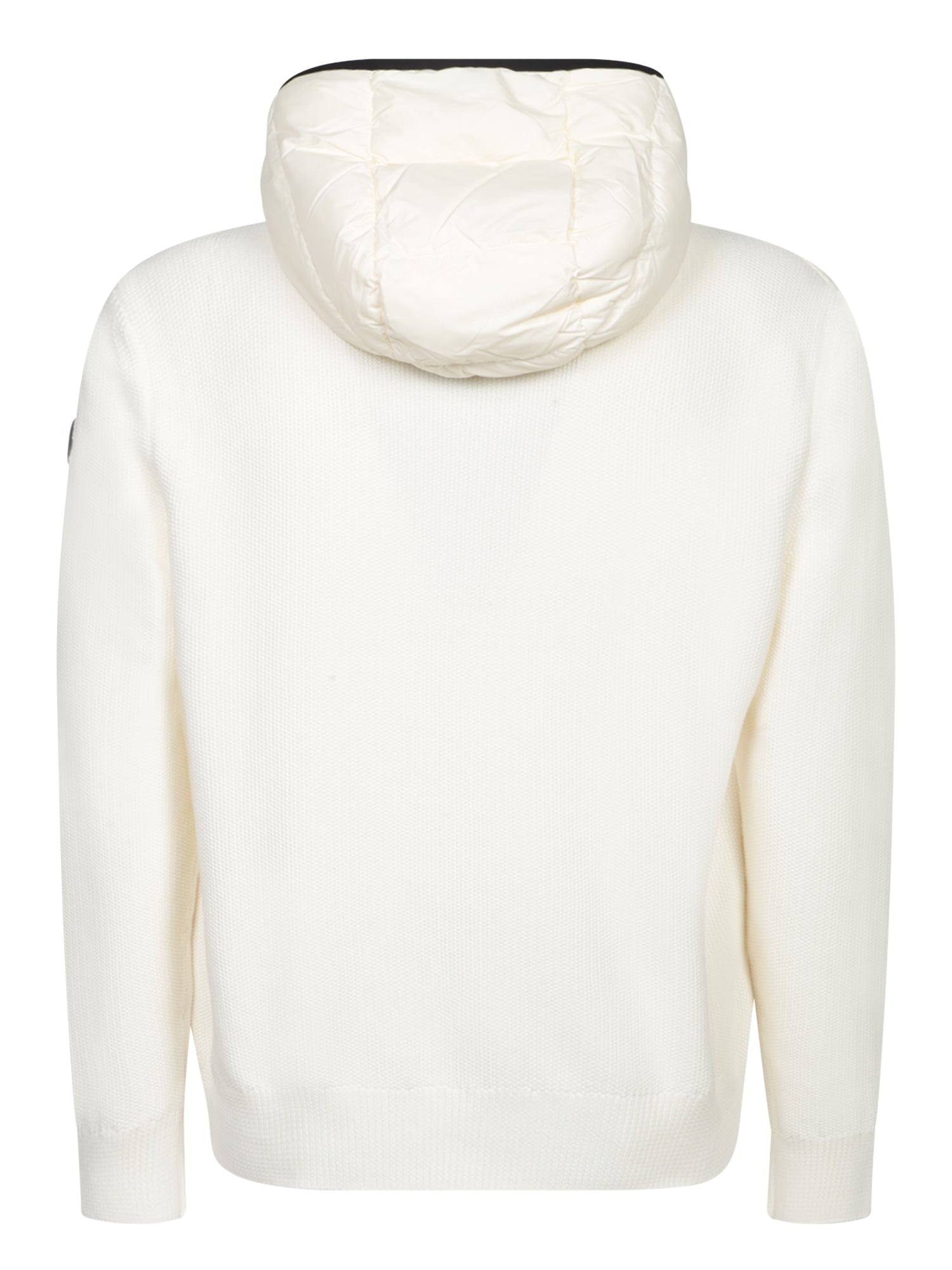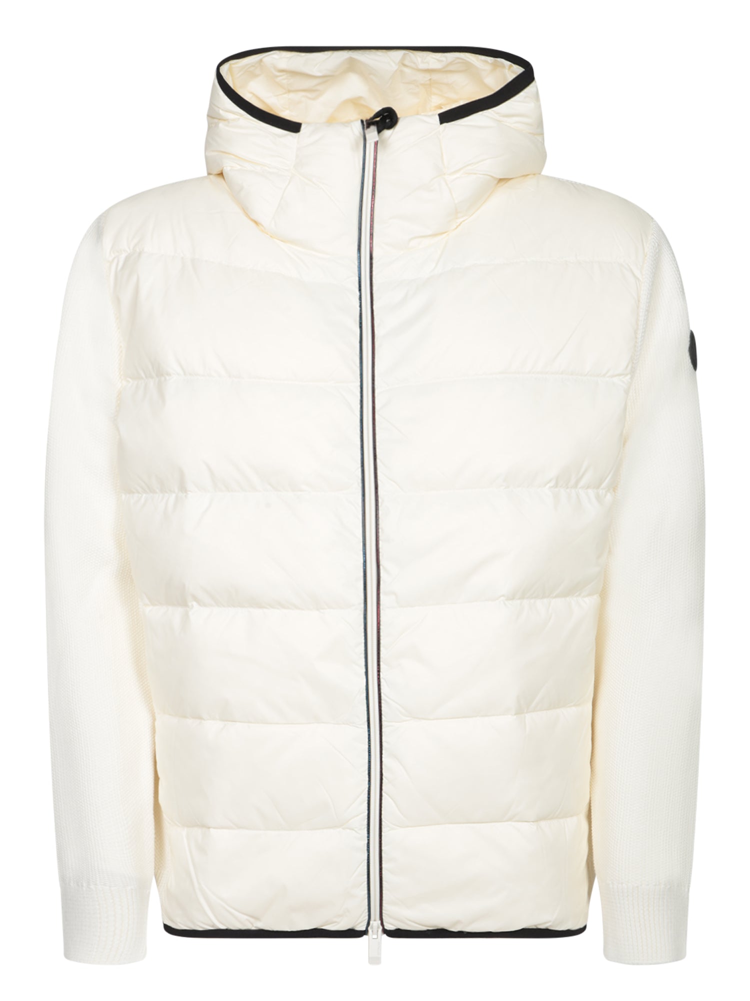 Front zip closure. High collar with contrast inner detail. Ribbed knit cuffs and hem.