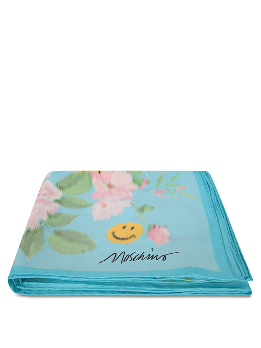 Light Blue Floral Silk Twill Scarf