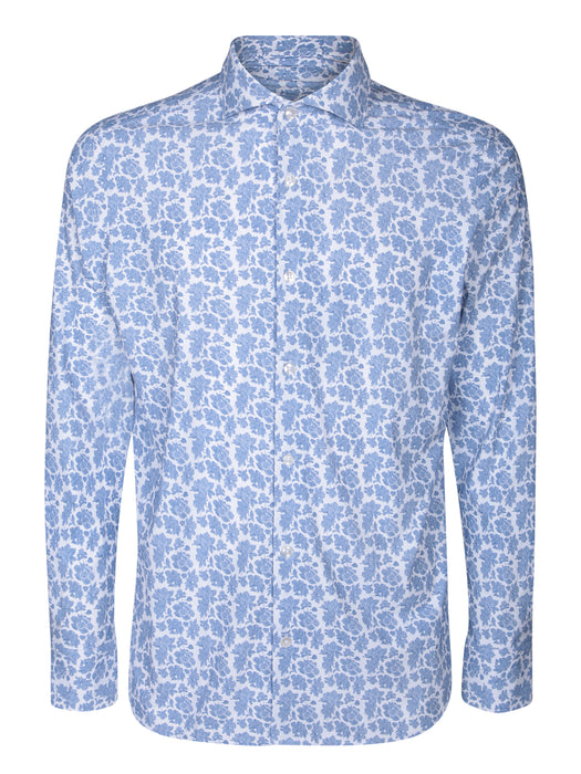 Mandarin Collar Long Sleeve Jersey Shirt in Cream