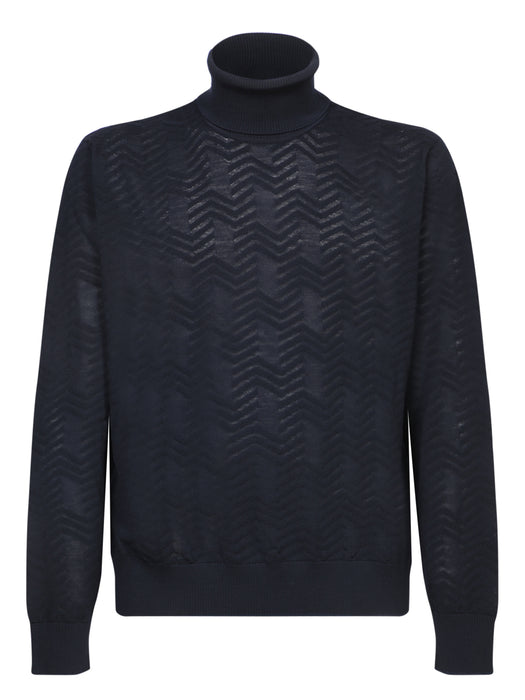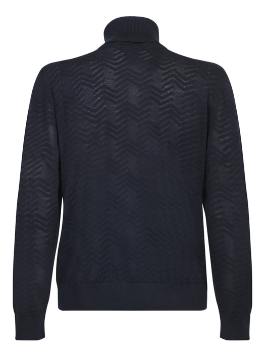 Blue Zigzag High Neck Sweater