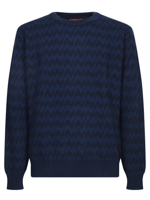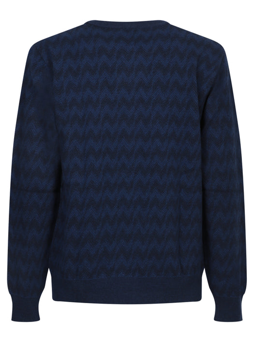 Blue Zigzag Wool and Cashmere Sweater