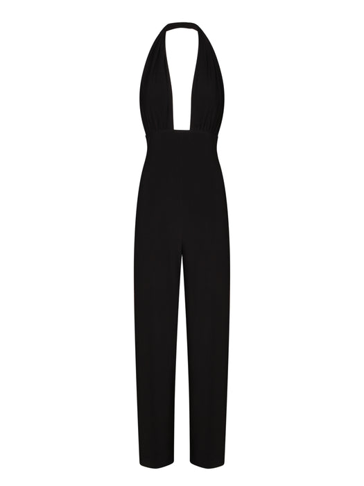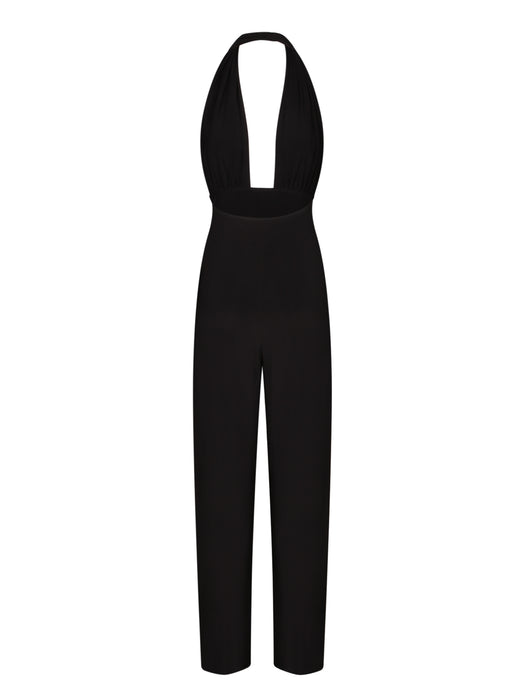 Black Cross Halter Straight Jumpsuit