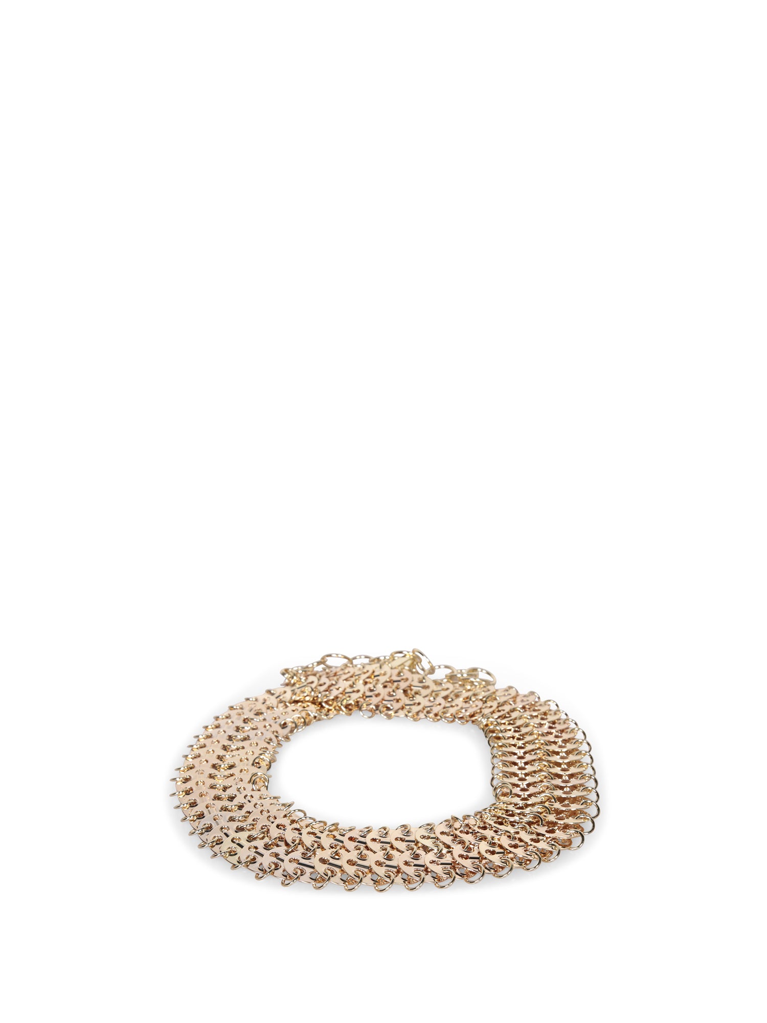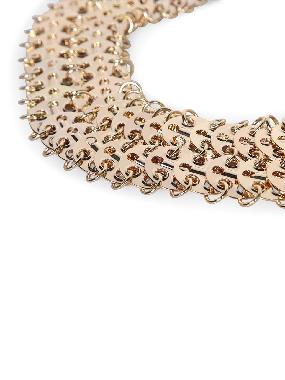 Glamorous golden metal belt. Mesh design with adjustable closure. Brand engraving on detail.