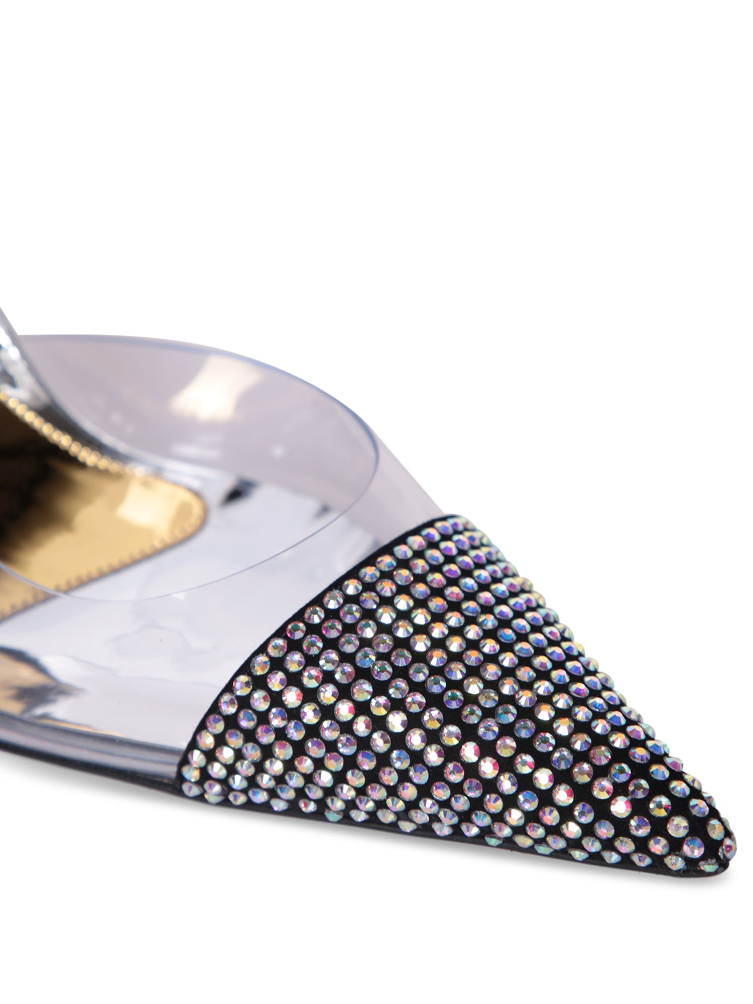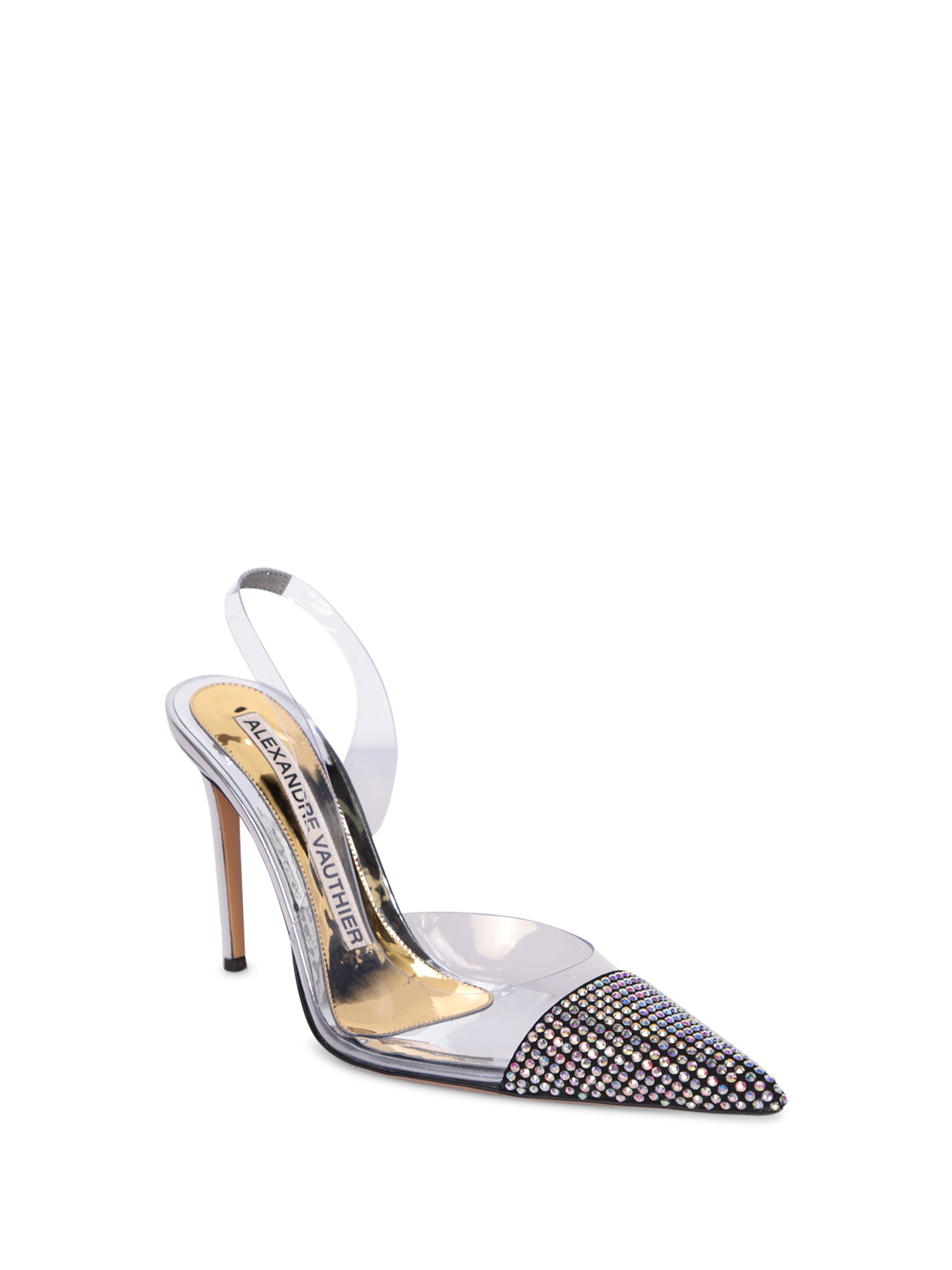 Designed with a transparent upper, these pumps from Alexandre Vauthier are punctuated with glimmering iridescent crystals at the toes
