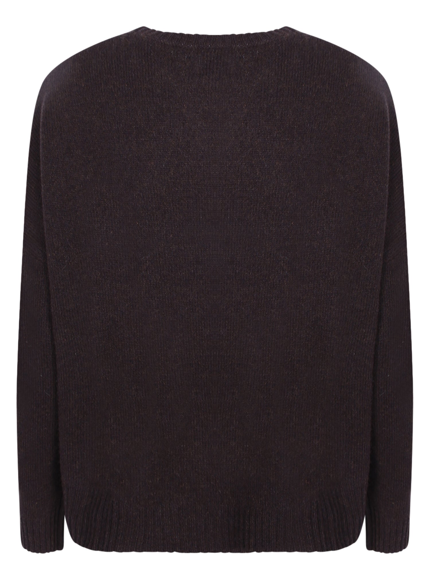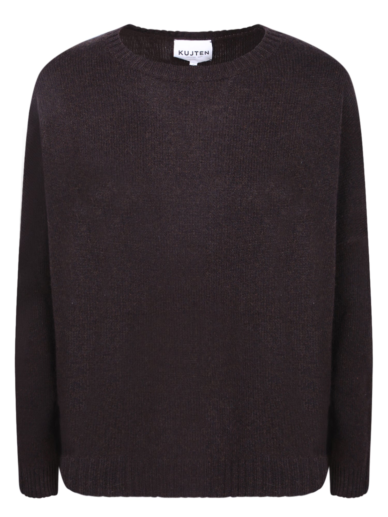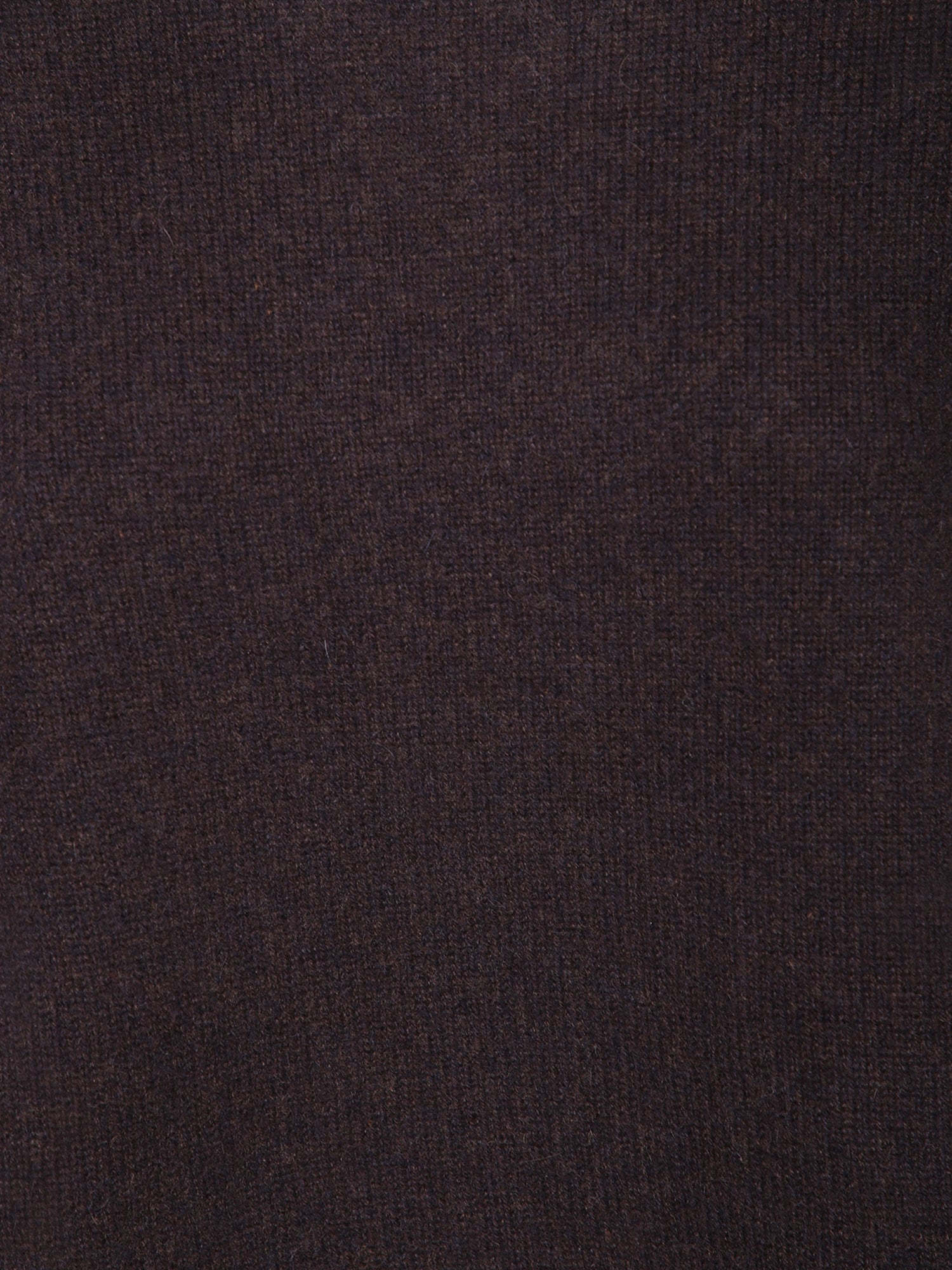Fine knit crew neck sweater. Ribbed trim. Uniform brown color.