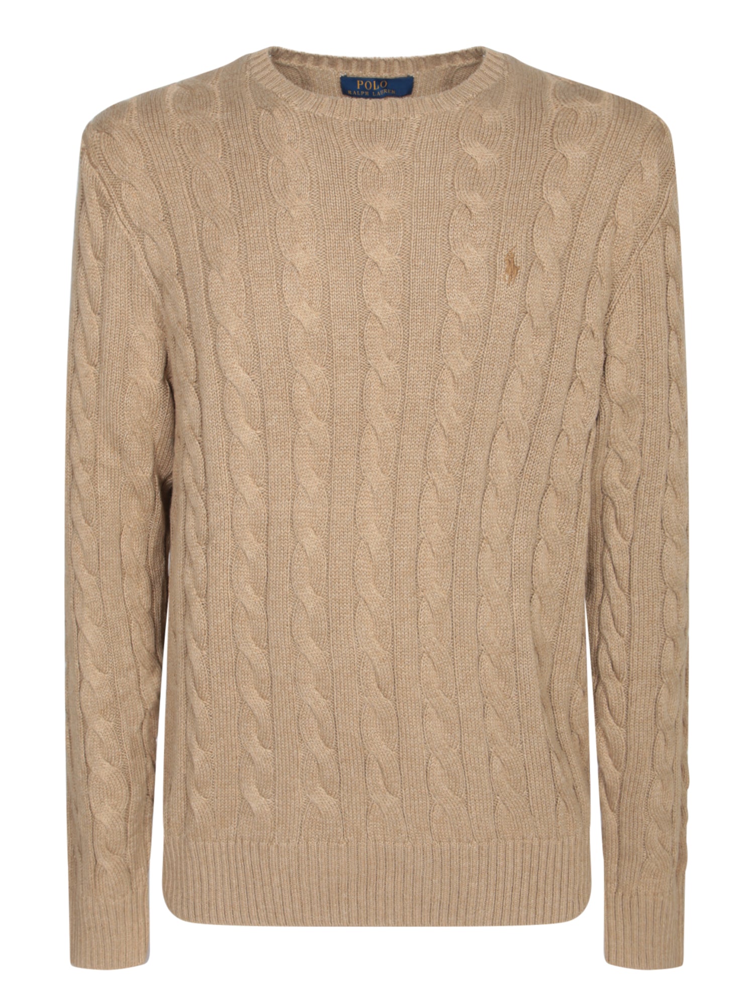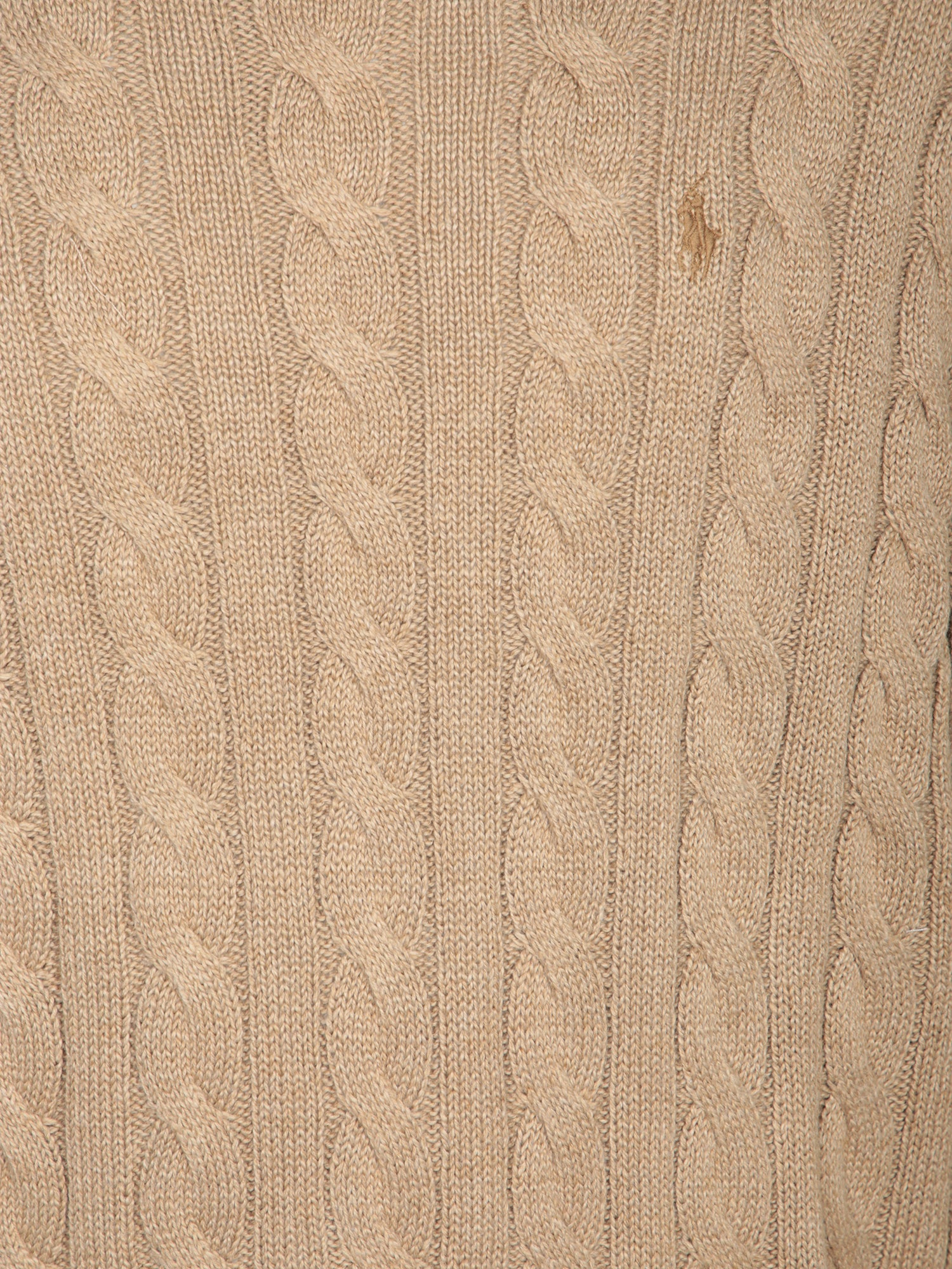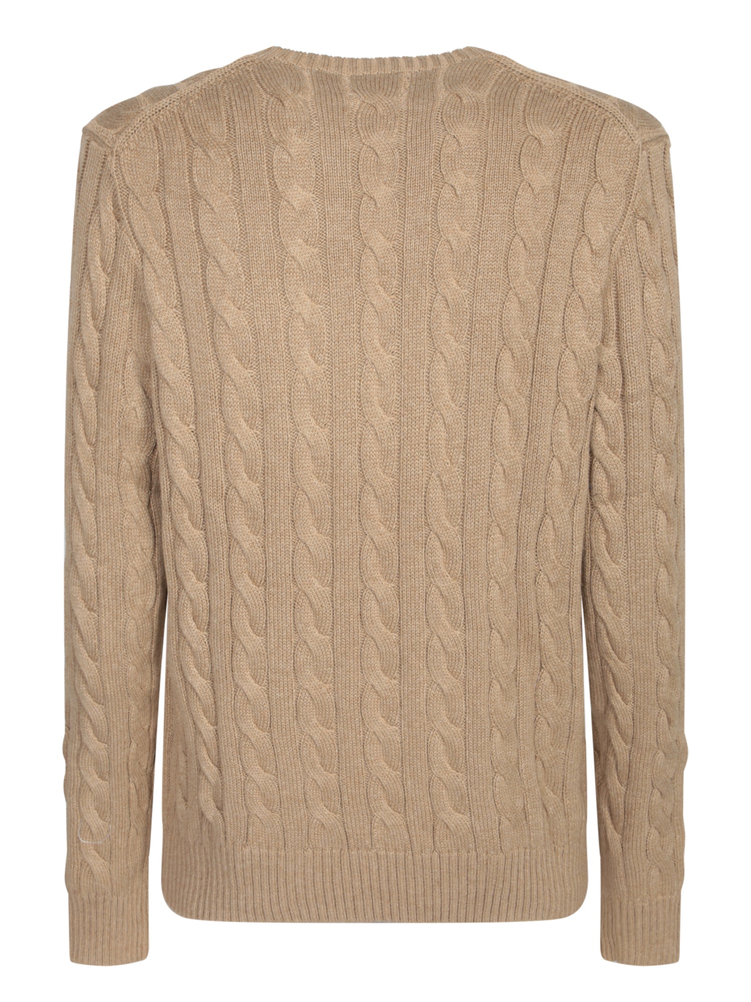 Pure cotton sweater with cable knit weave. Crew neck and long sleeves. Ribbed finishes on collar, cuffs, and hem.