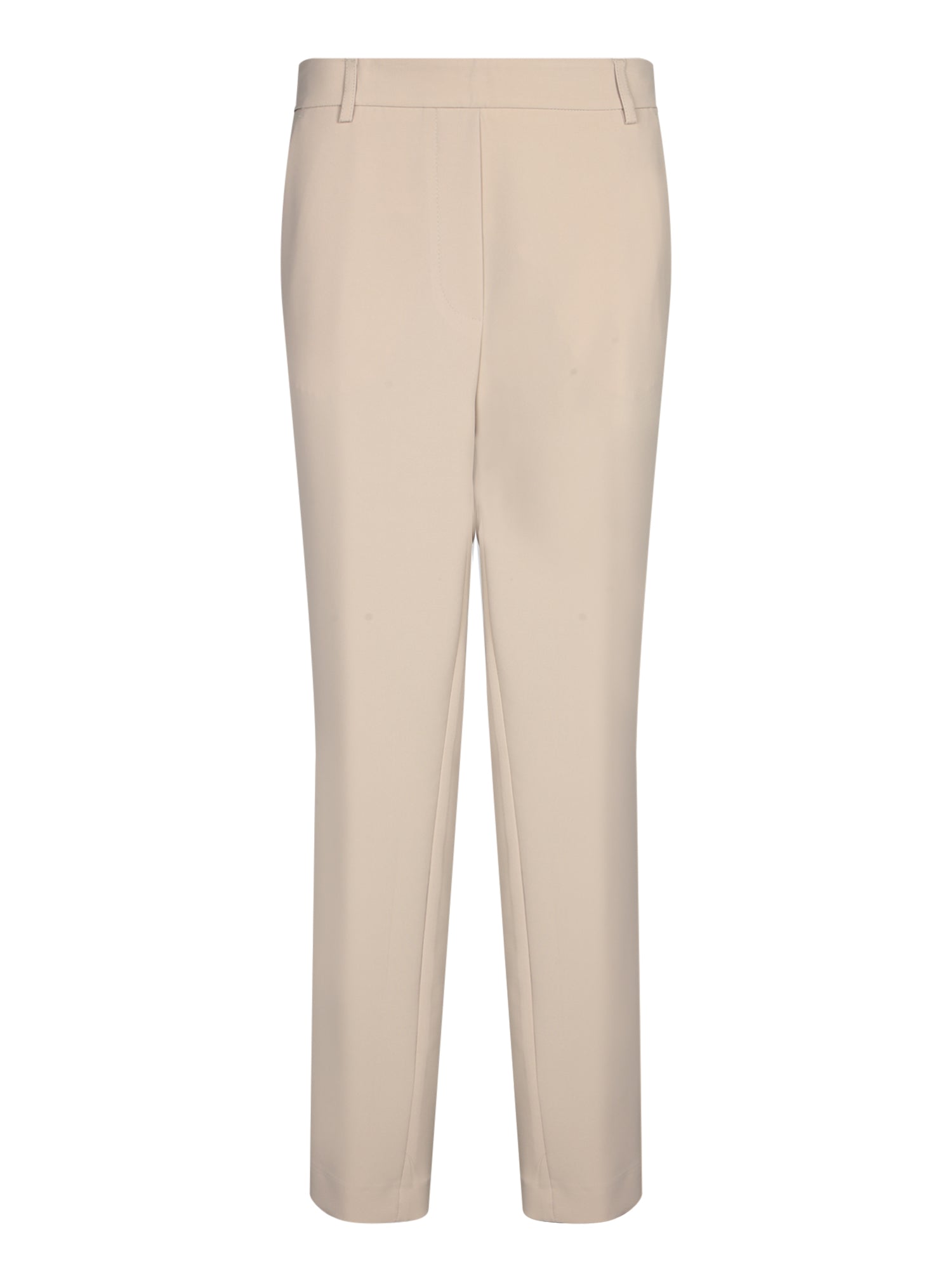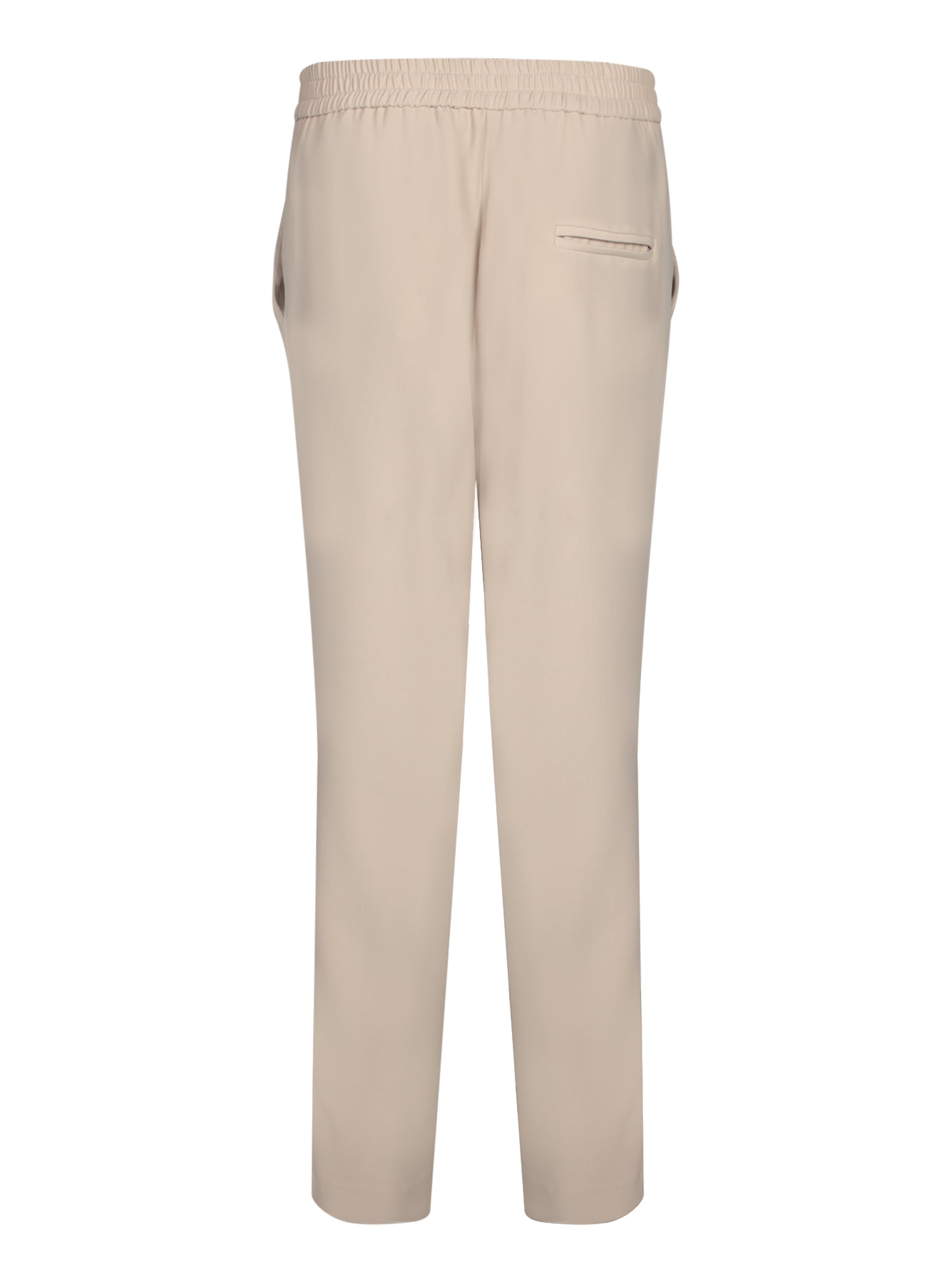 Elegant beige stretch cady pants, perfect for a sophisticated and comfortable look. Features a tapered silhouette that flatters the figure with minimalist detailing.