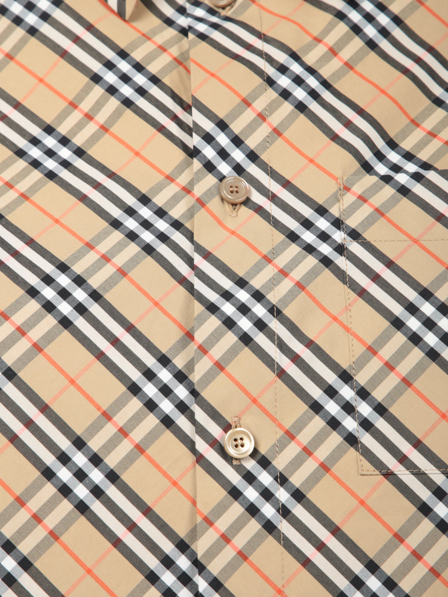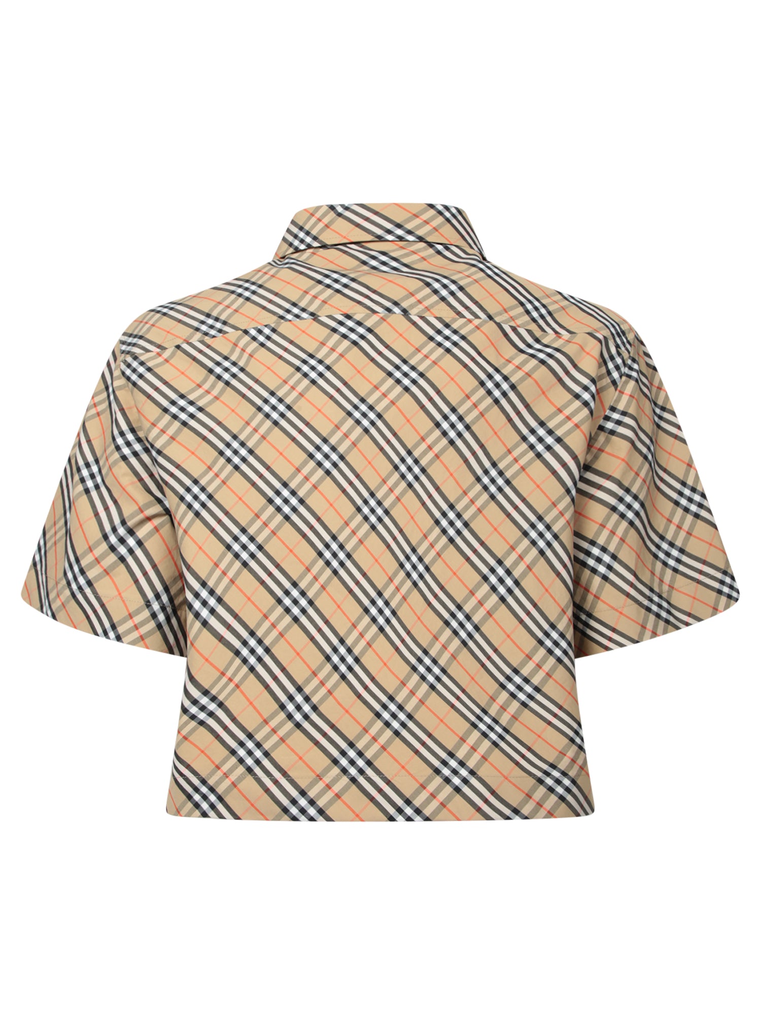 Short sleeves. Iconic check print. Classic collar and button front closure.