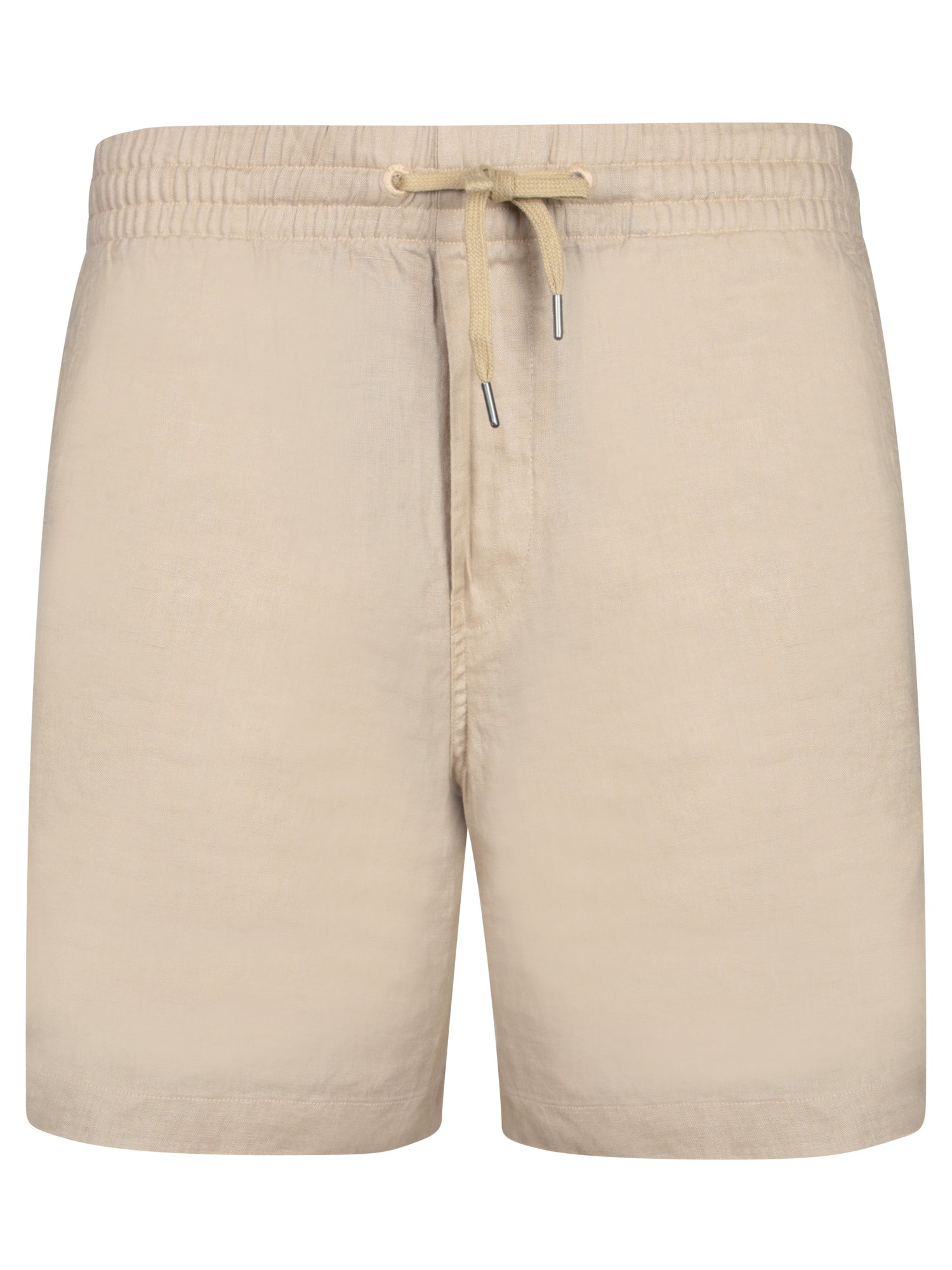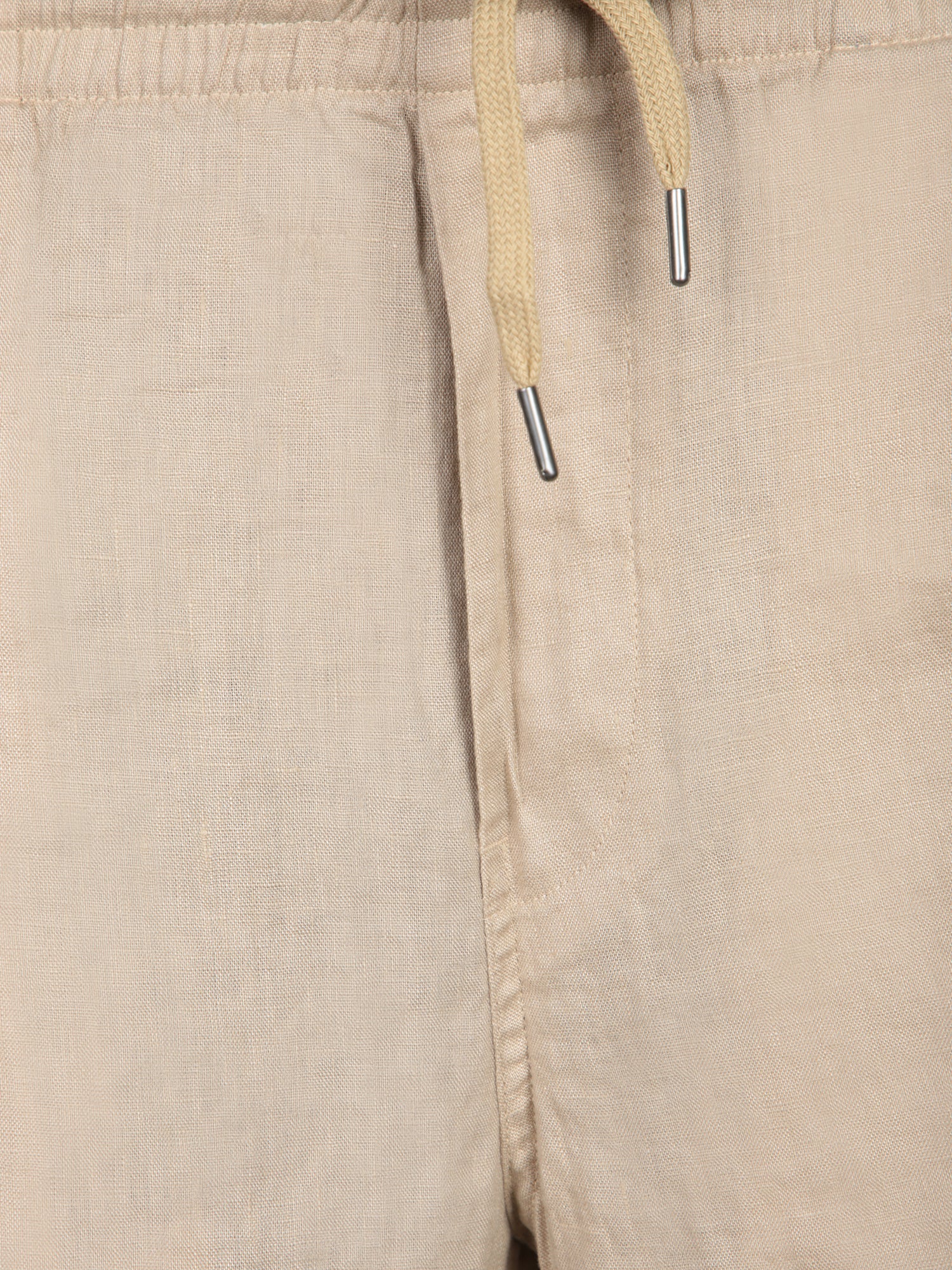 Linen Bermuda shorts, adjustable drawstring, side pockets.