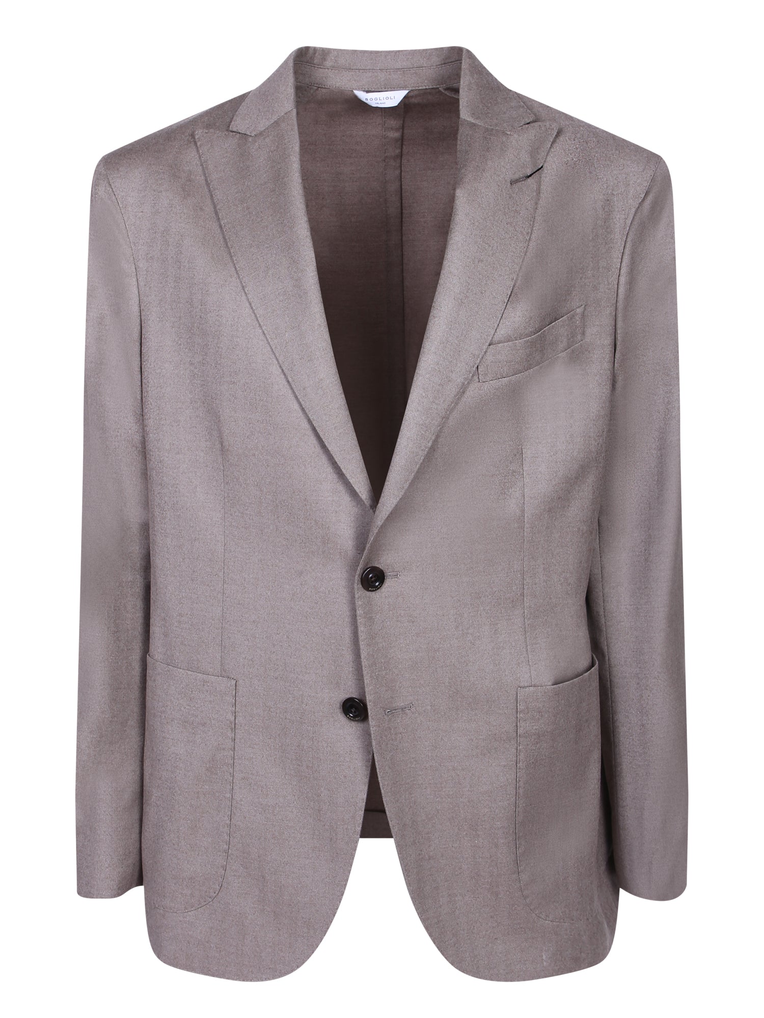 Tailored silk jacket. Two-button design, classic lapels, two welt front pockets, and buttoned sleeves.