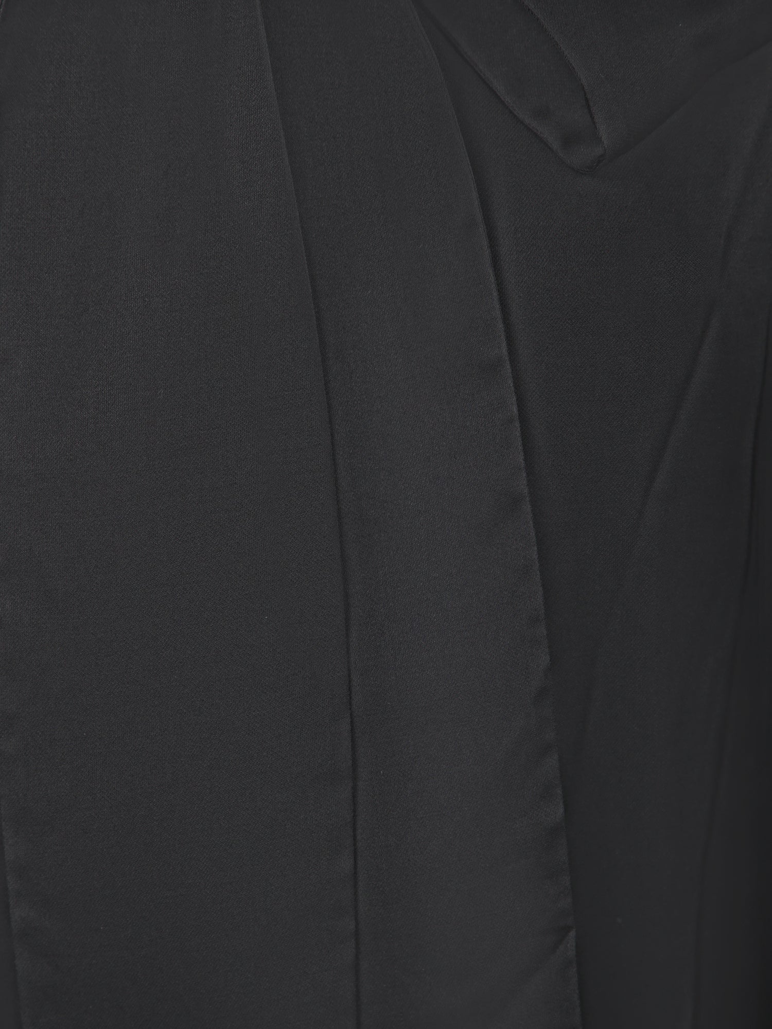 Smooth fabric shirt, classic collar, long sleeves, bow detail at the neck.