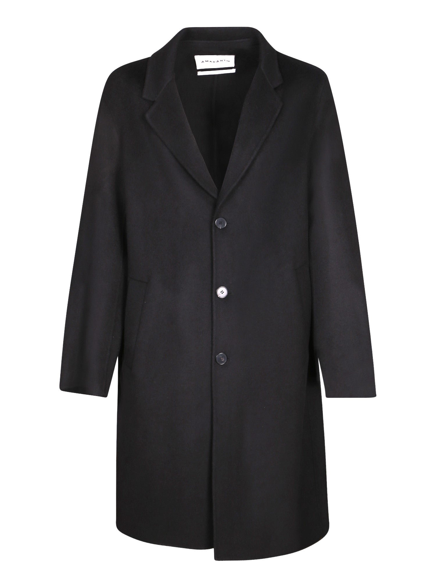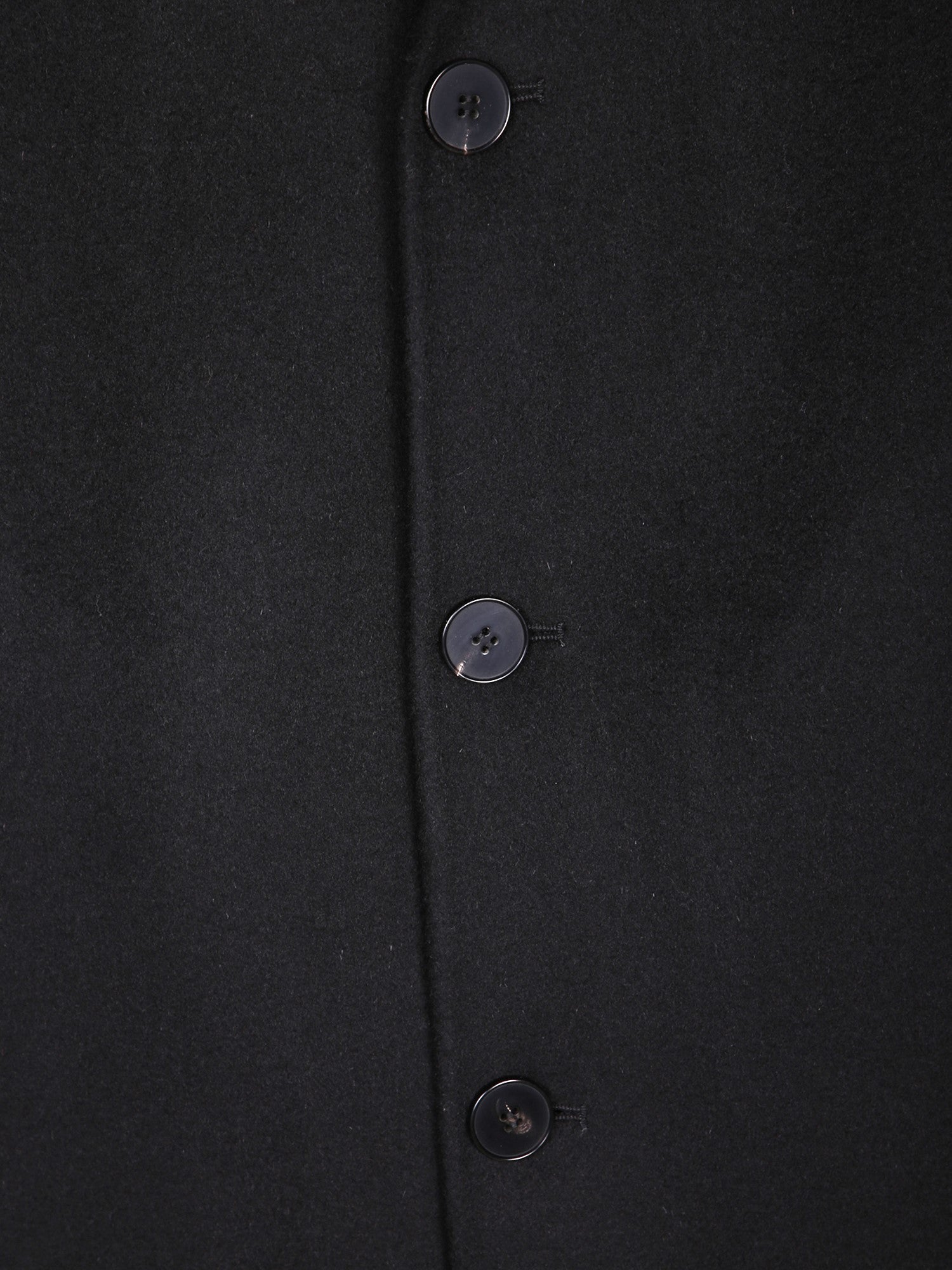 Elegant coat featuring a three-button closure, notched lapels, and side pockets.