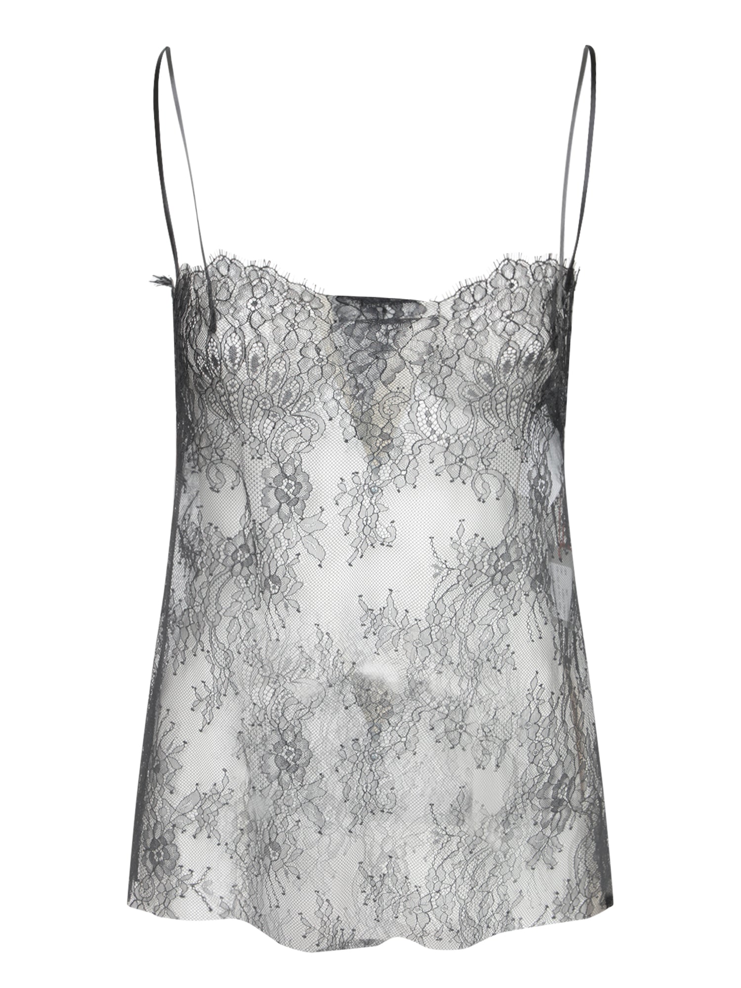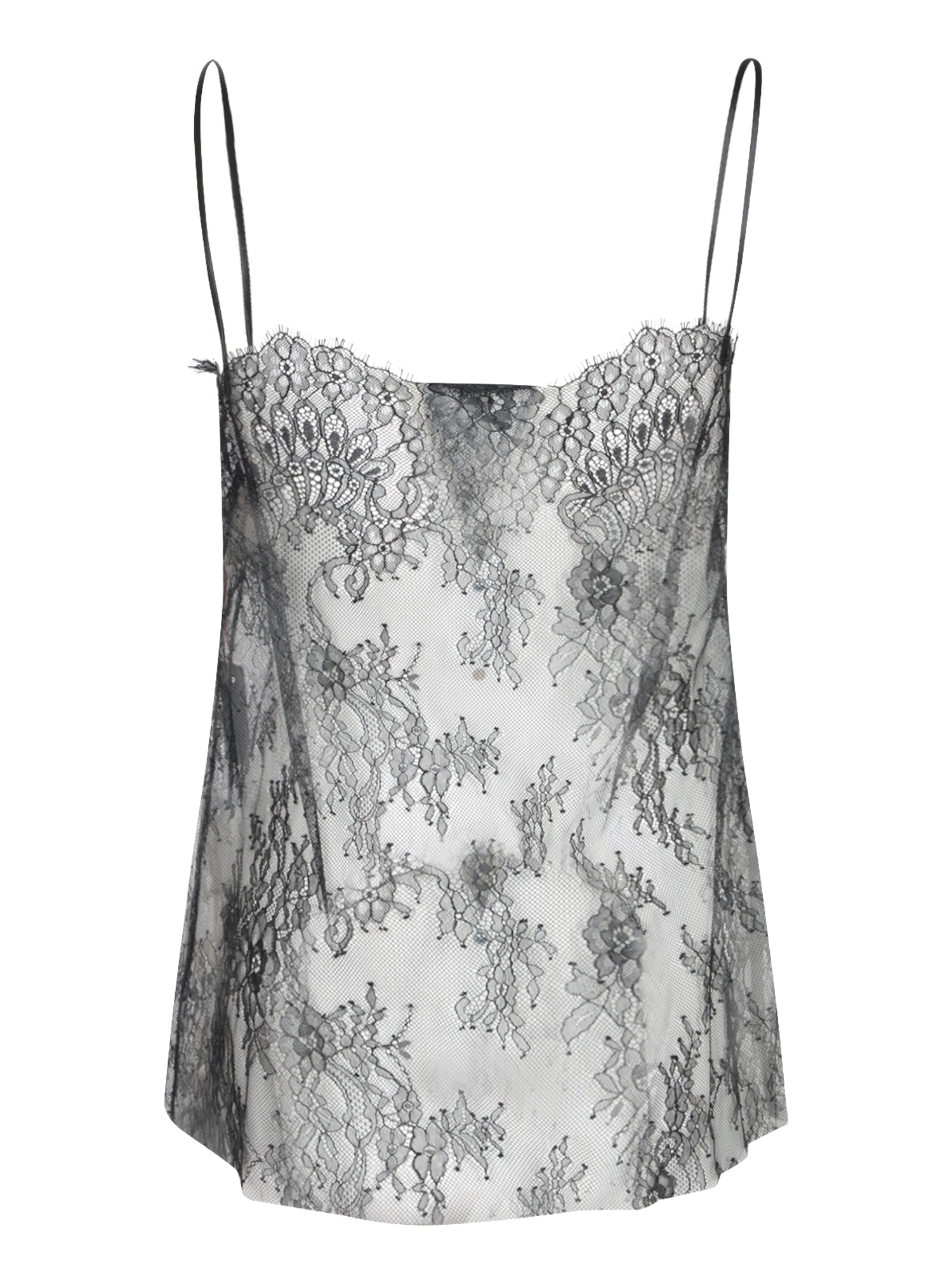 Sleeveless top with thin straps and sophisticated lace detailing.