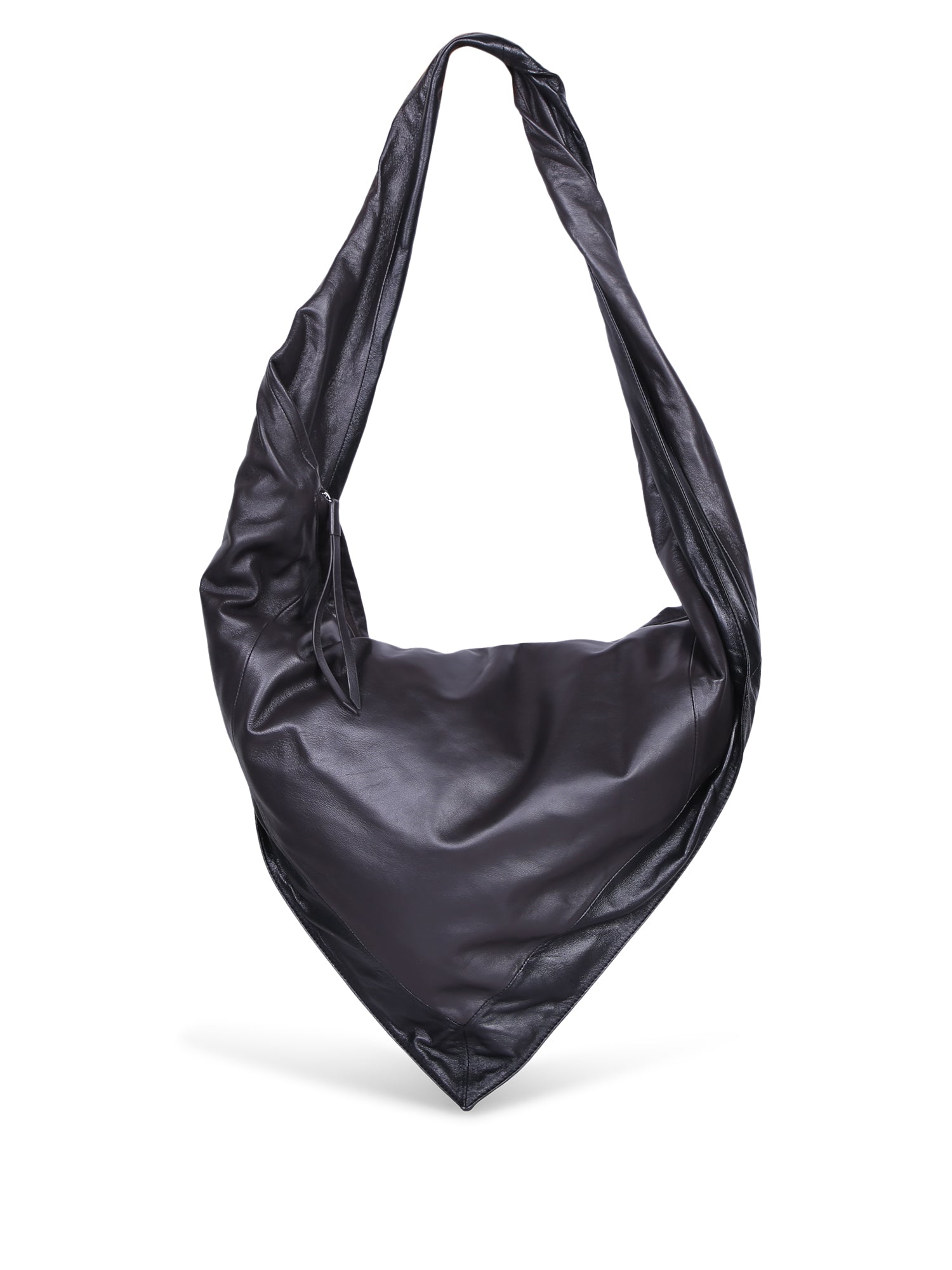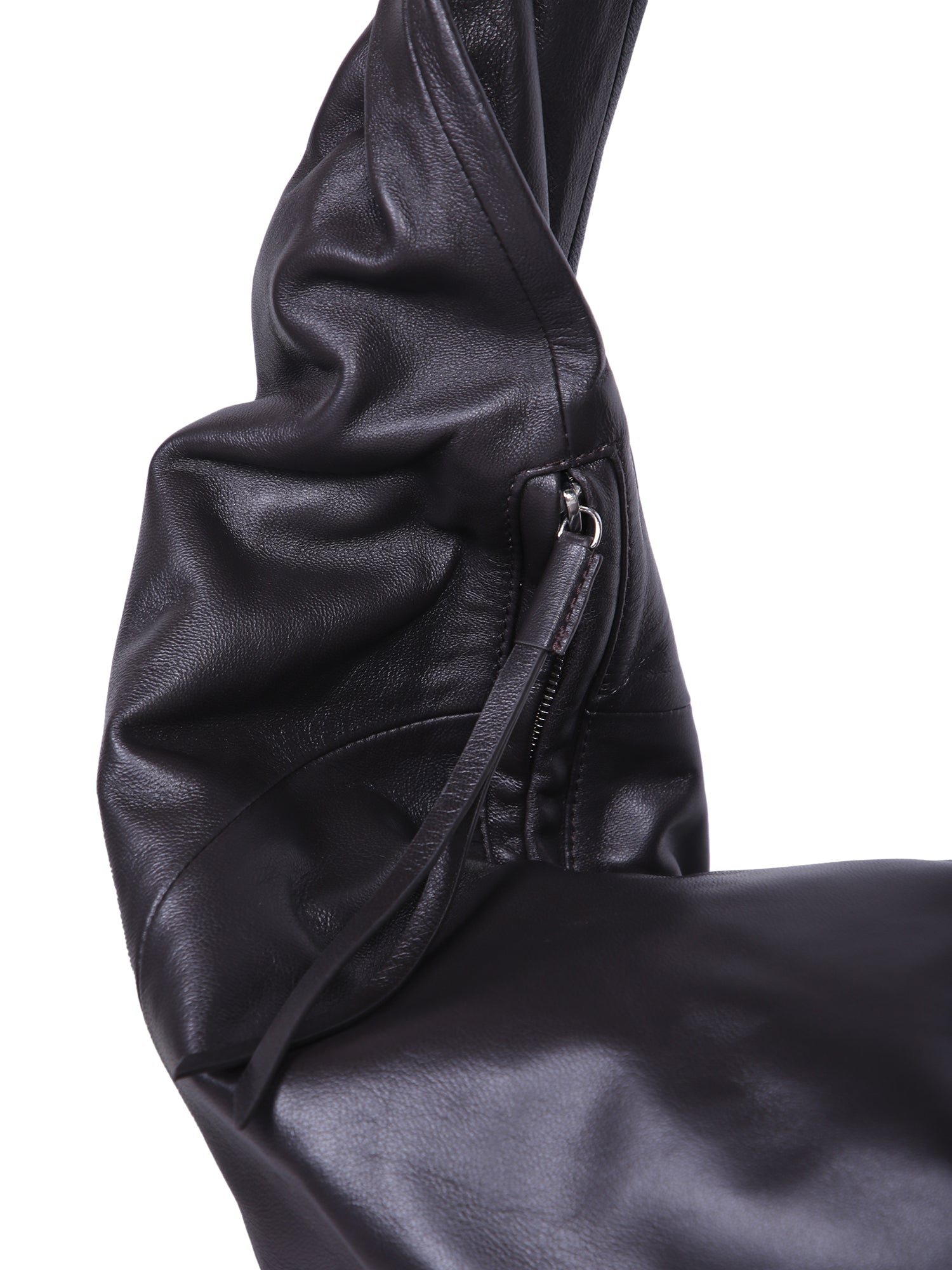 Innovative scarf-shaped design. Made from high-quality soft leather. Zip closure.