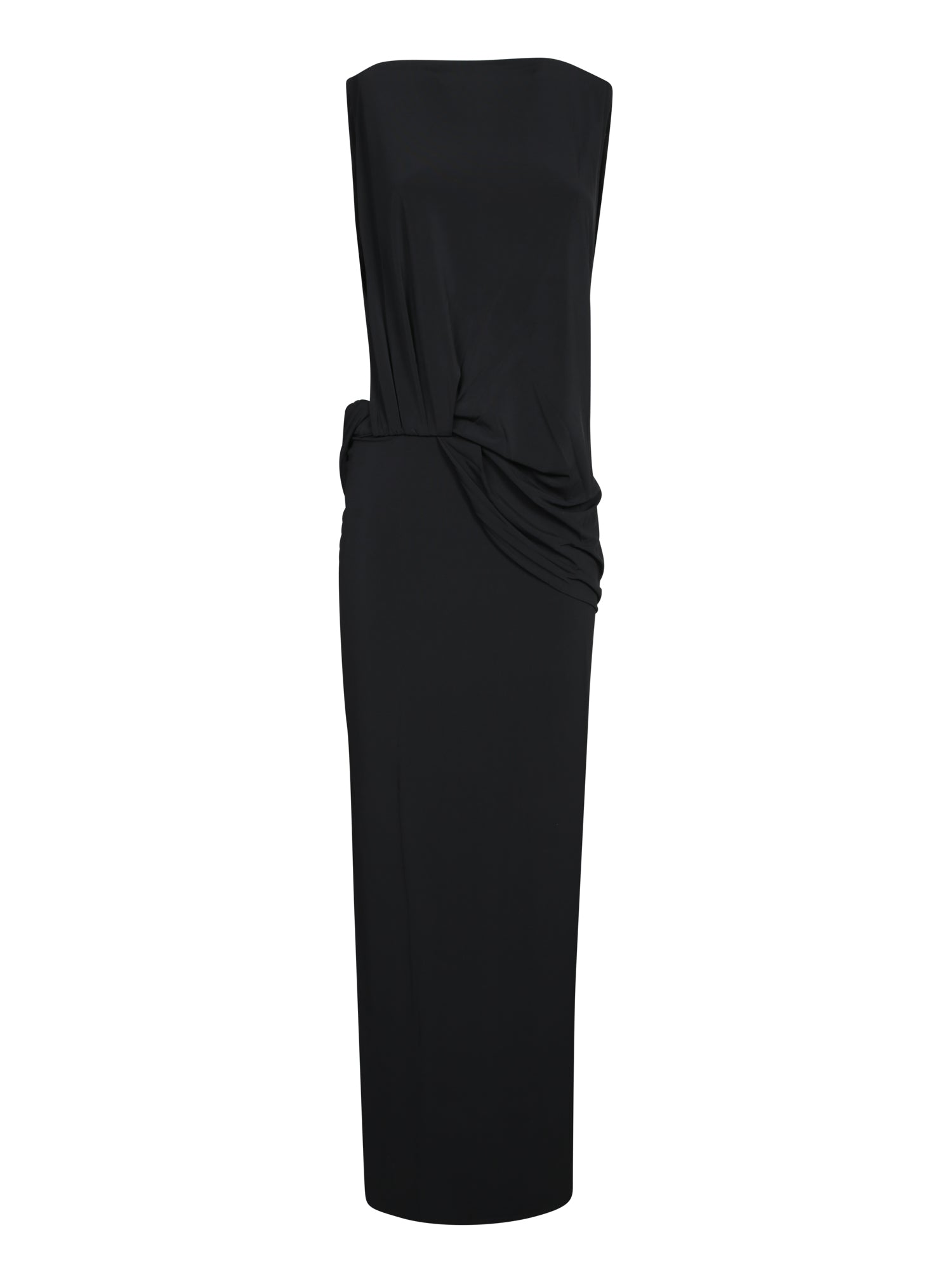 Timeless elegance with this long dress by Jacquemus, featuring bold draping and a clean, modern silhouette. Ideal for formal evenings and special occasions.