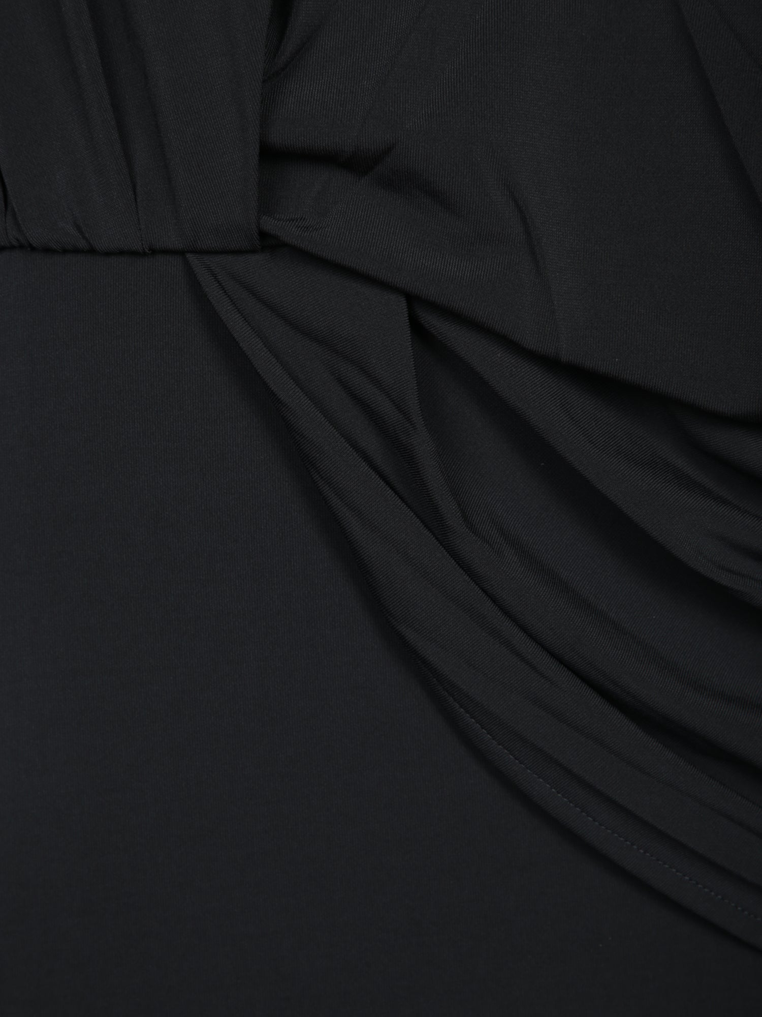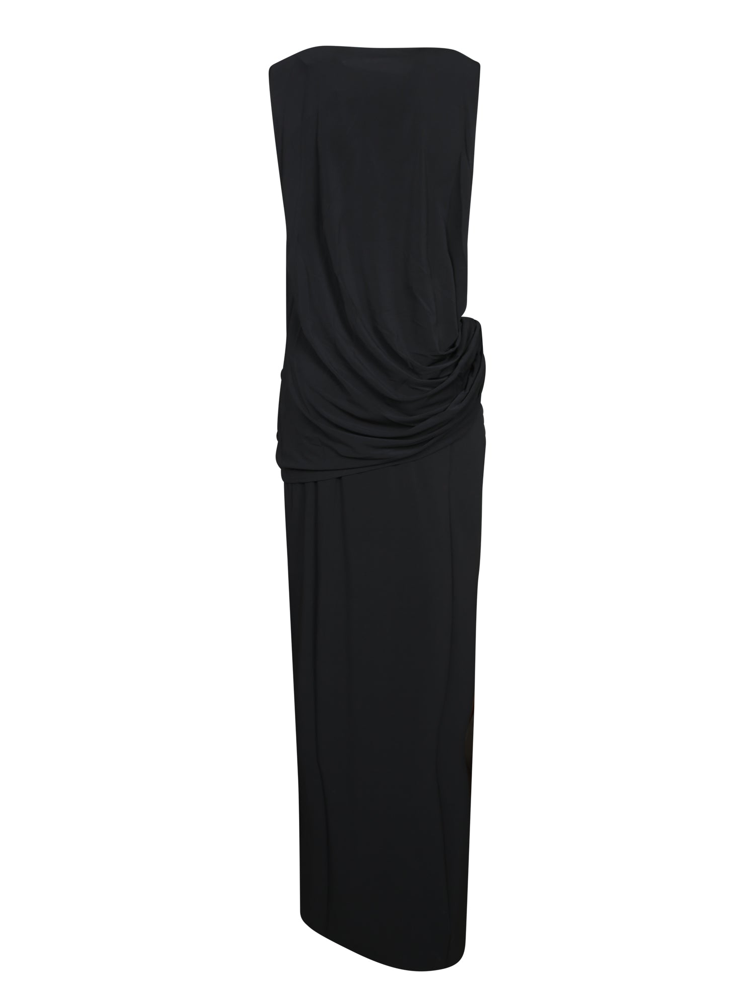 Long dress. Fluid fabric. Sleeveless. Side drape.