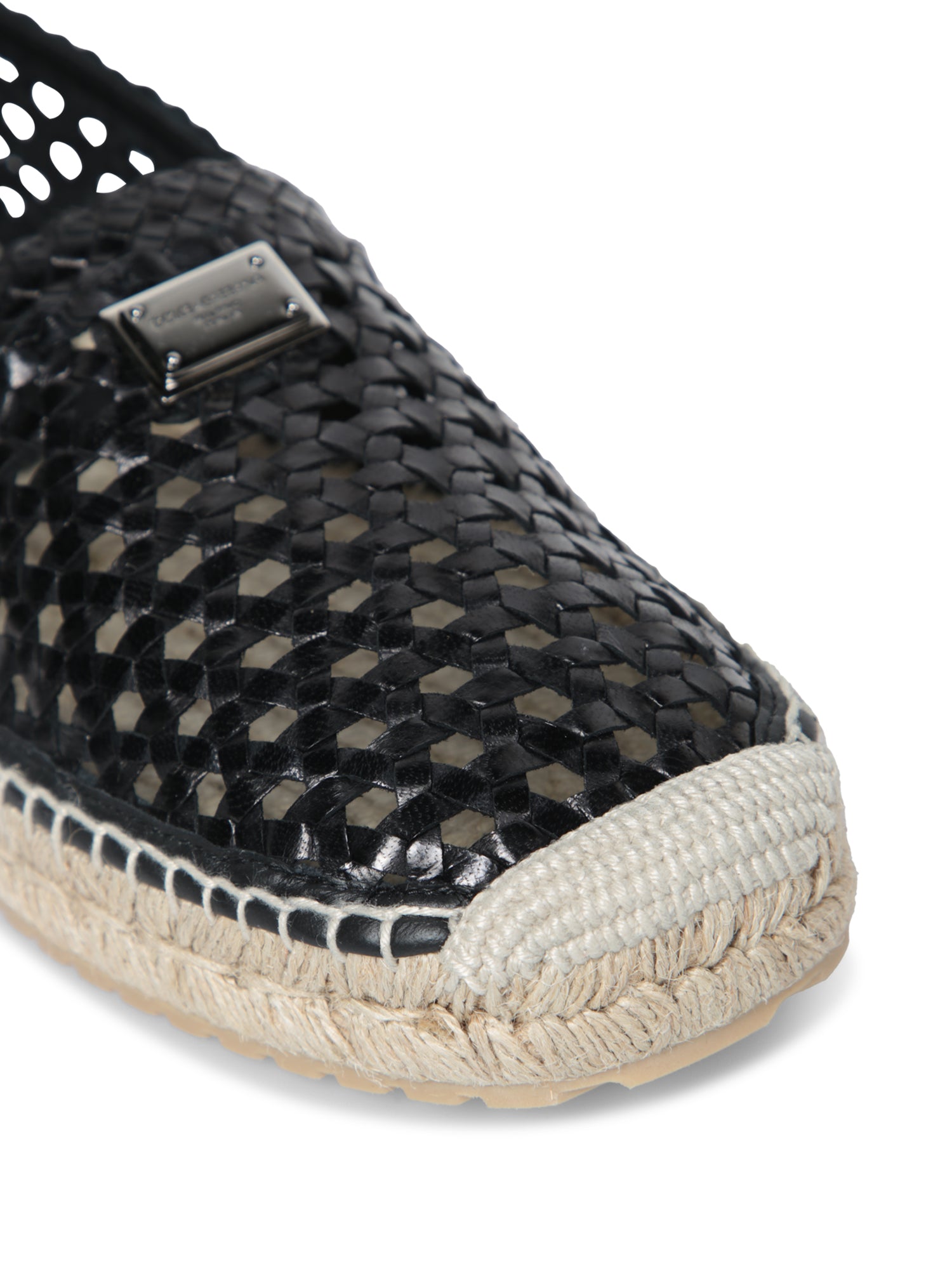 Crafted with sartorial finesse, these Dolce & Gabbana espadrilles feature an exclusive woven fabric and a silver logo plaque that adds a touch of sophistication.