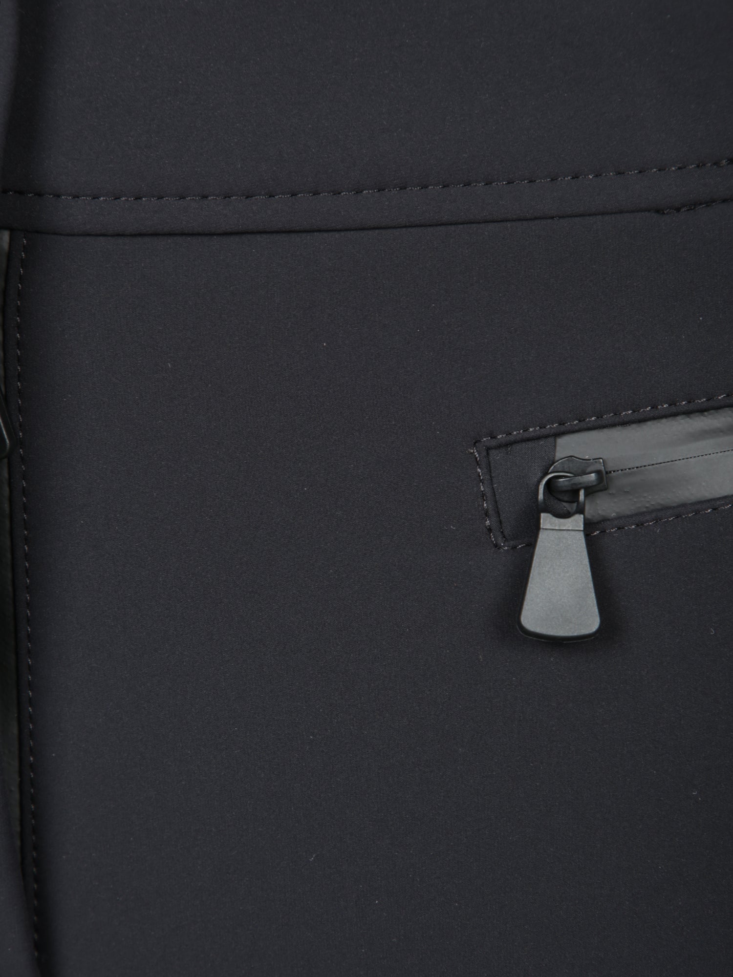 Technical ski trousers with protective inserts, waterproof zip pockets, and elasticized closures at the hems.