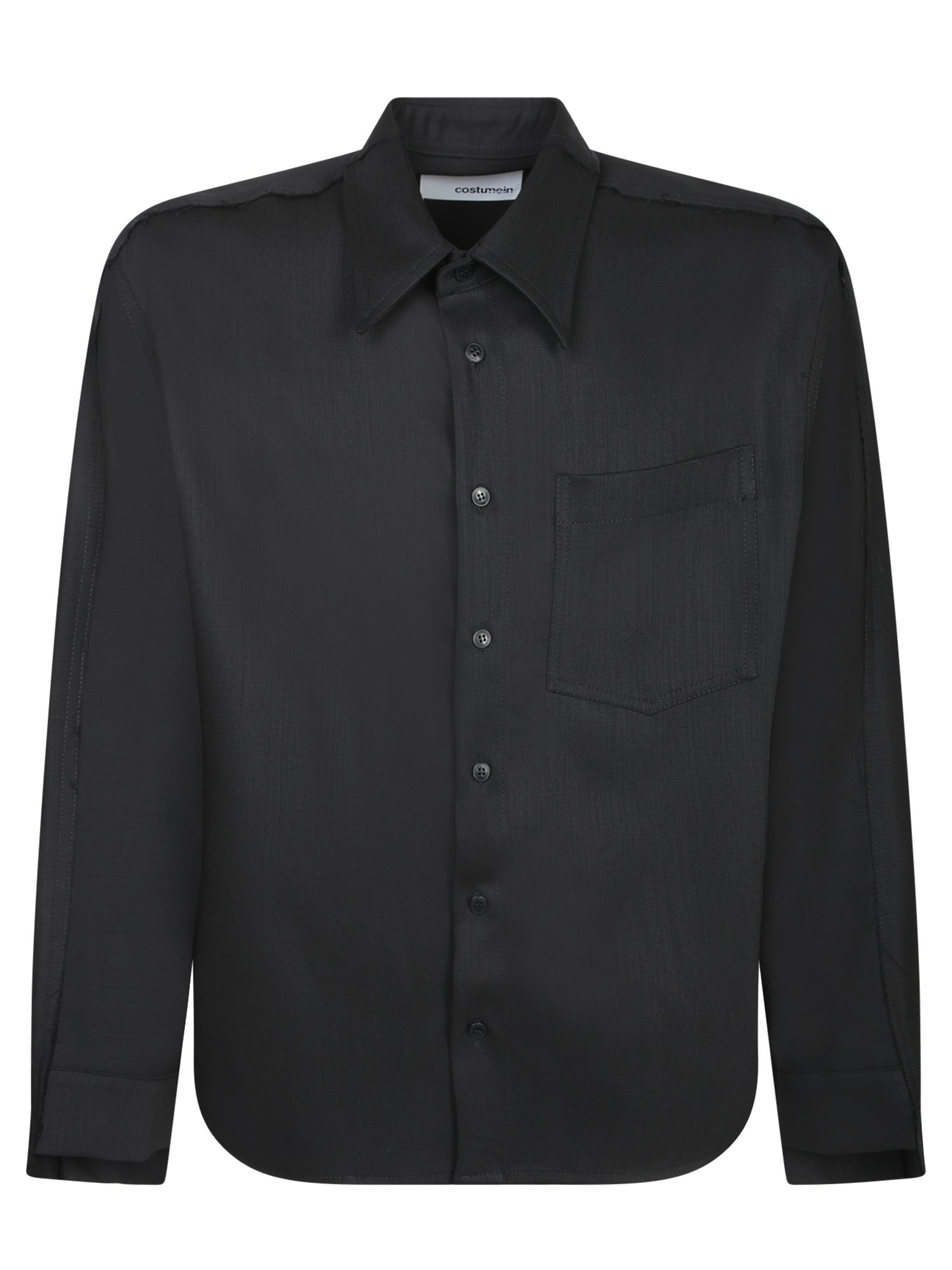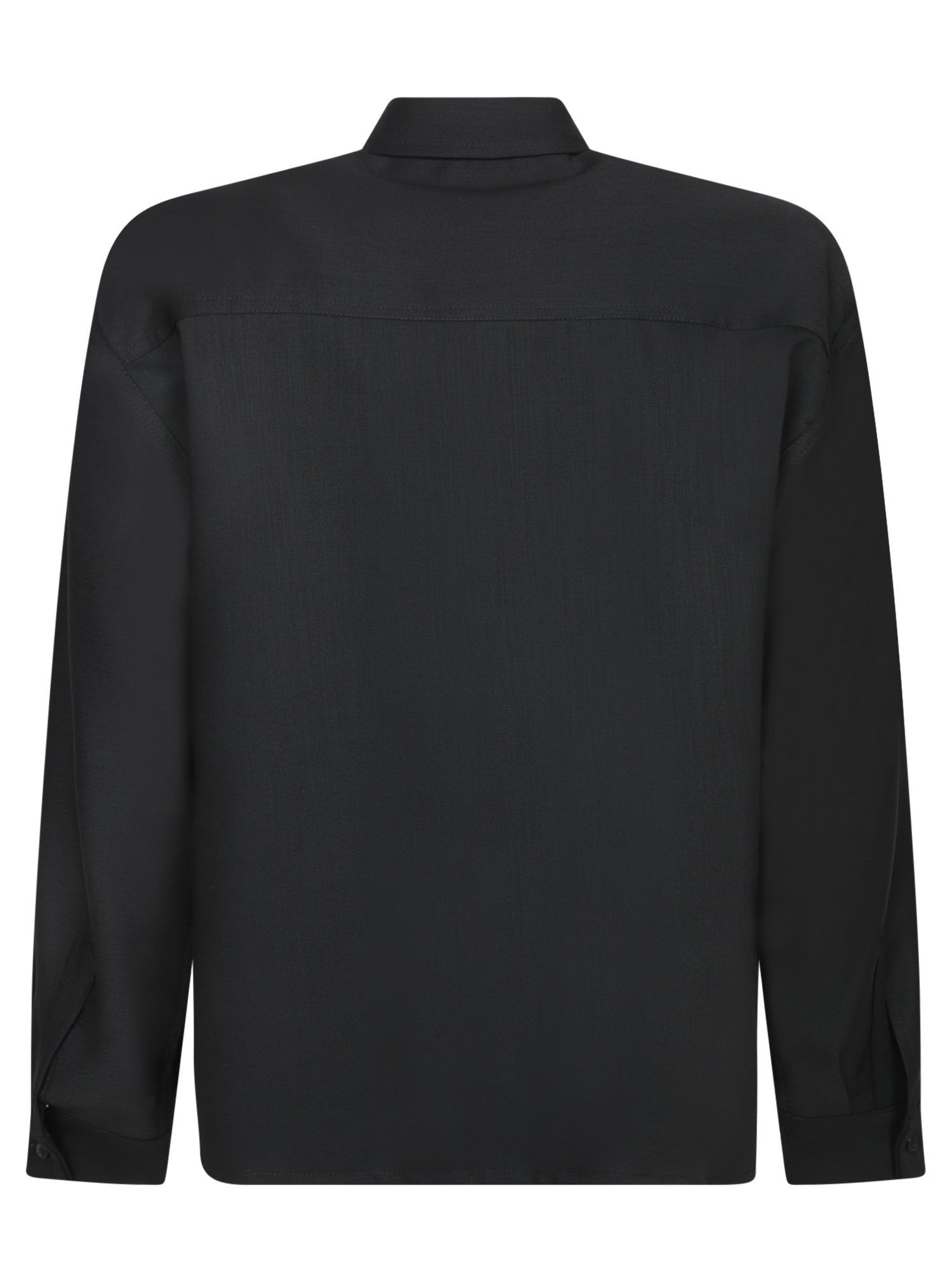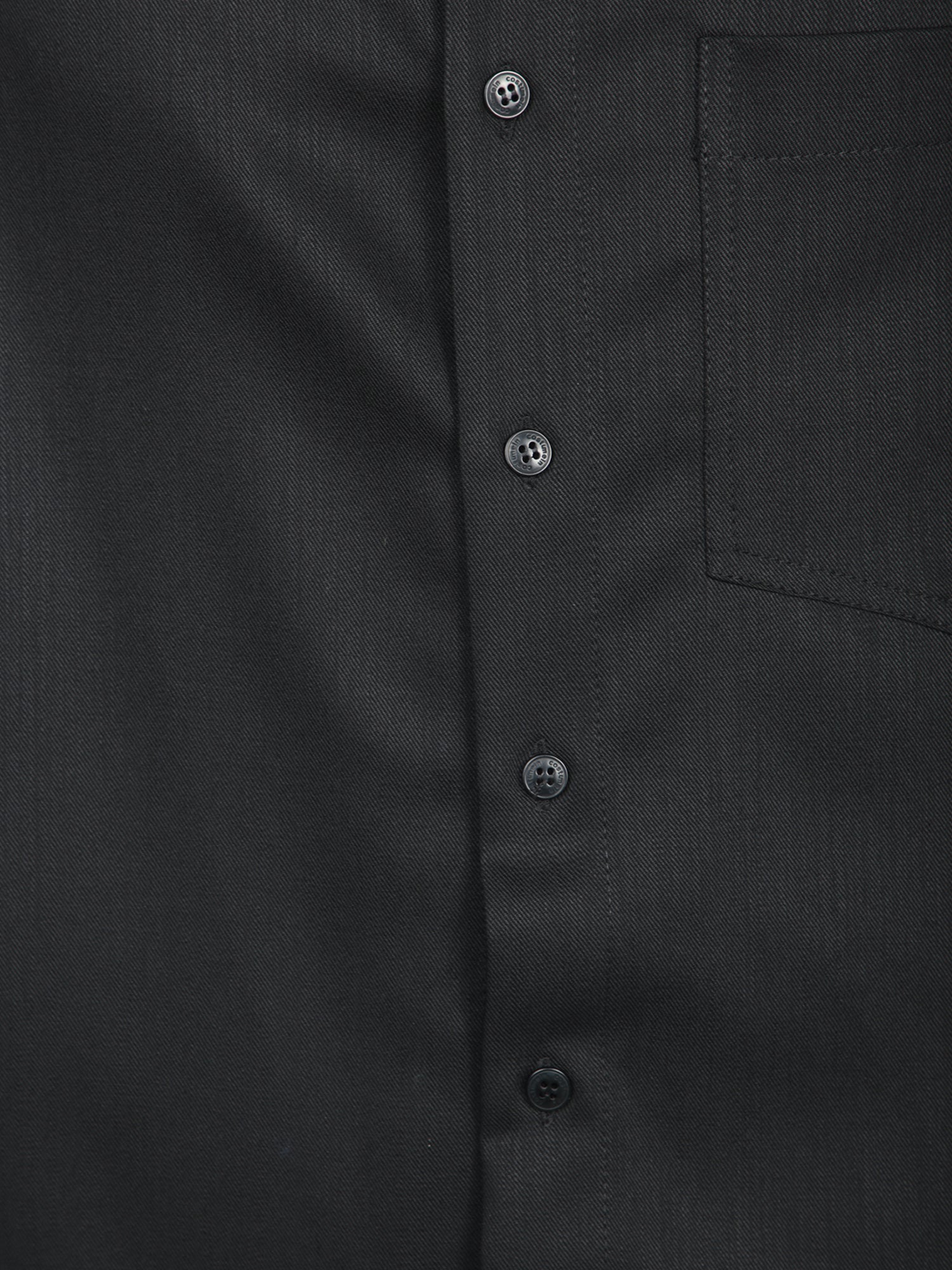 Long-sleeved twill overshirt. Features a classic collar, front button closure, and a chest patch pocket.