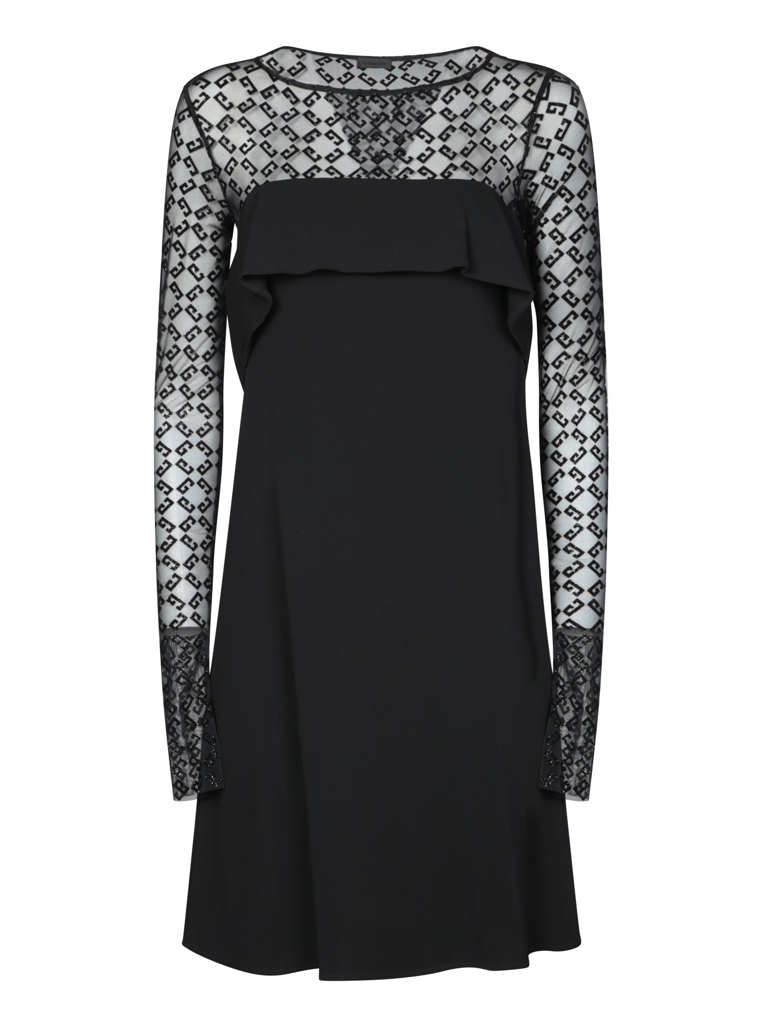 This elegant Givenchy dress blends modern design with the timeless appeal of black. Perfect for an evening event, it enhances the silhouette with a touch of sophisticated transparency on the arms and an elegant peplum detail.