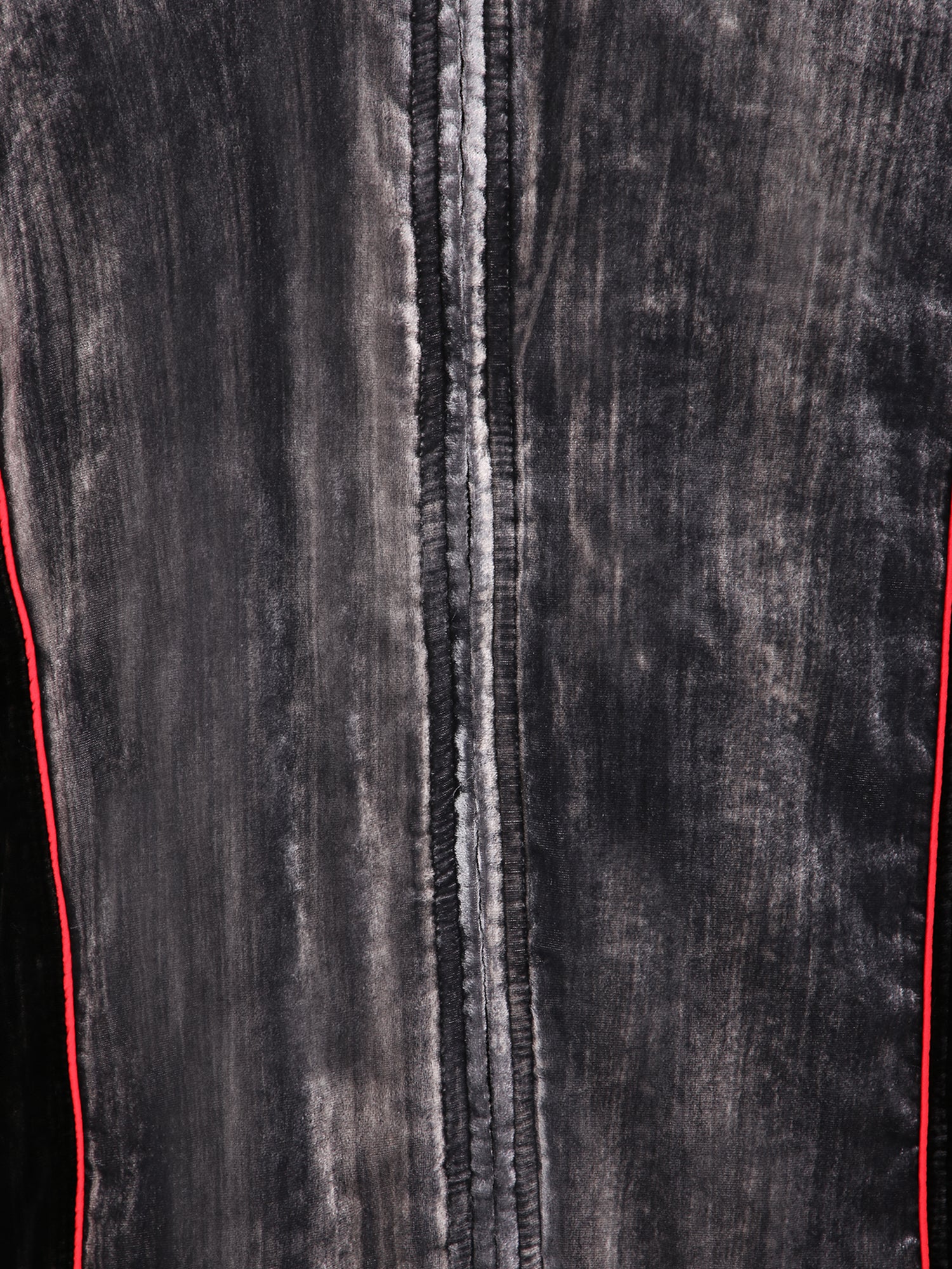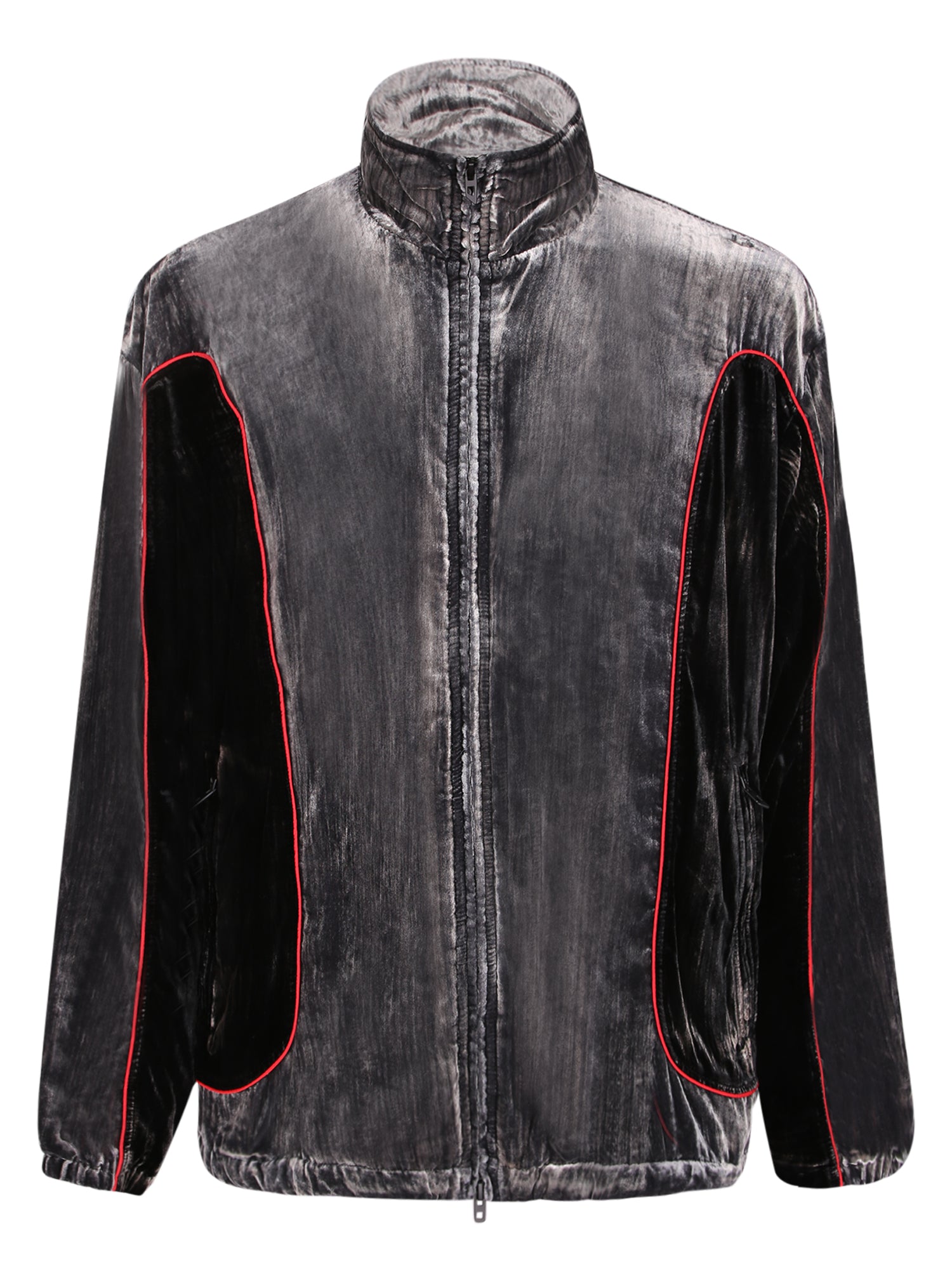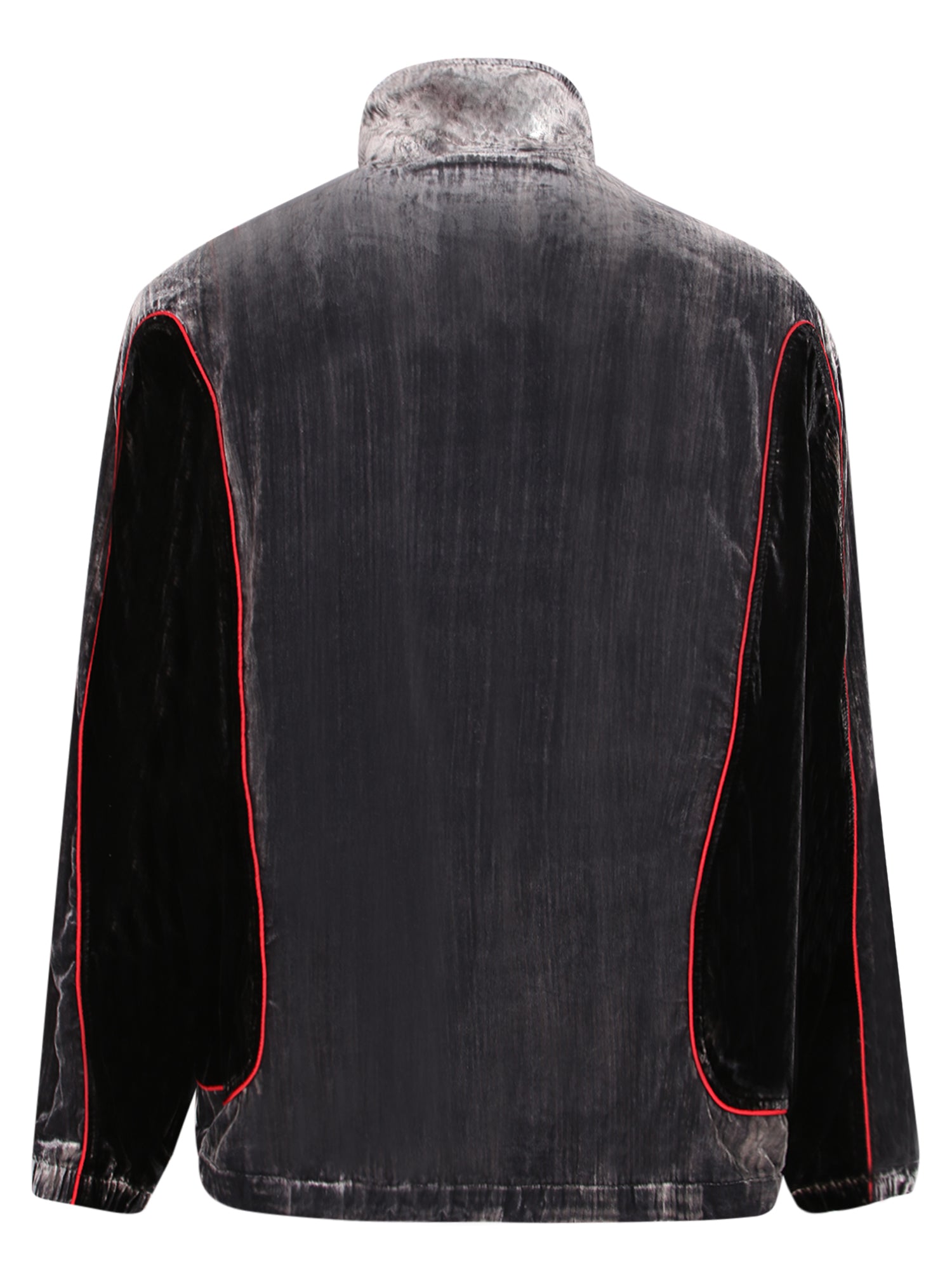 Velvet sweatshirt with zipper closure. Red stitch detailing. High collar.
