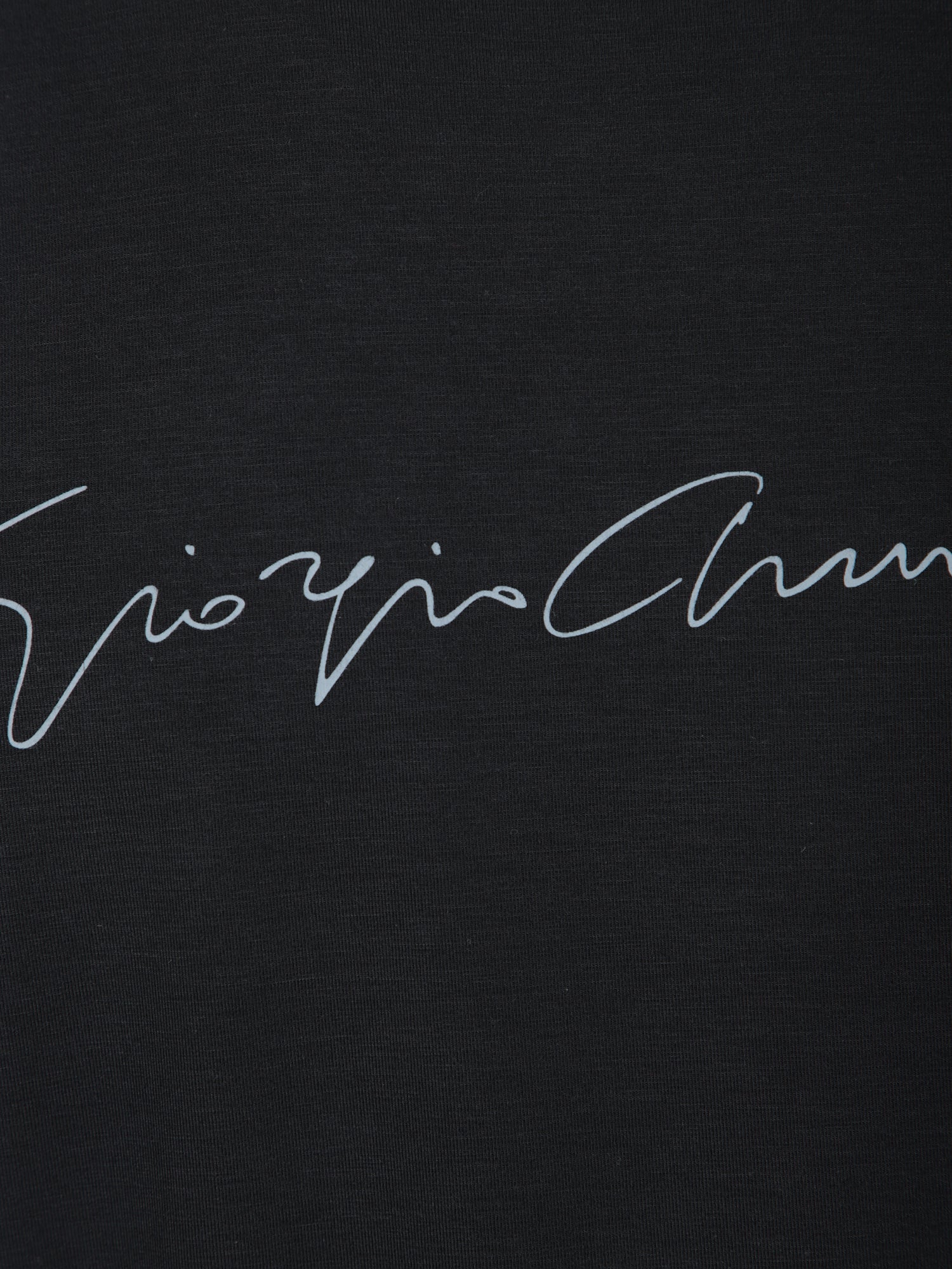 Striking a perfect balance between comfort and elegant style, this Giorgio Armani t-shirt in soft viscose jersey features a minimalist design with a distinctive touch through the contrasting signed logo.