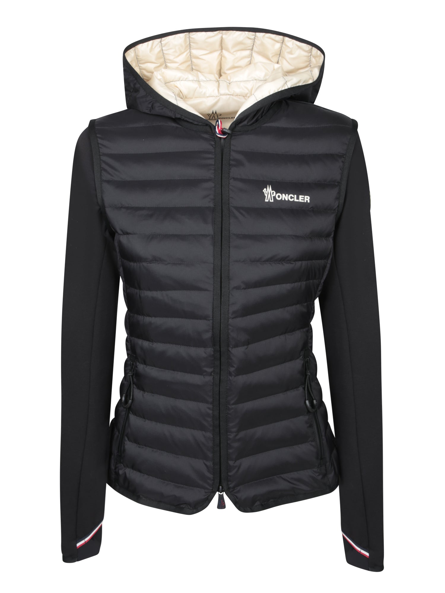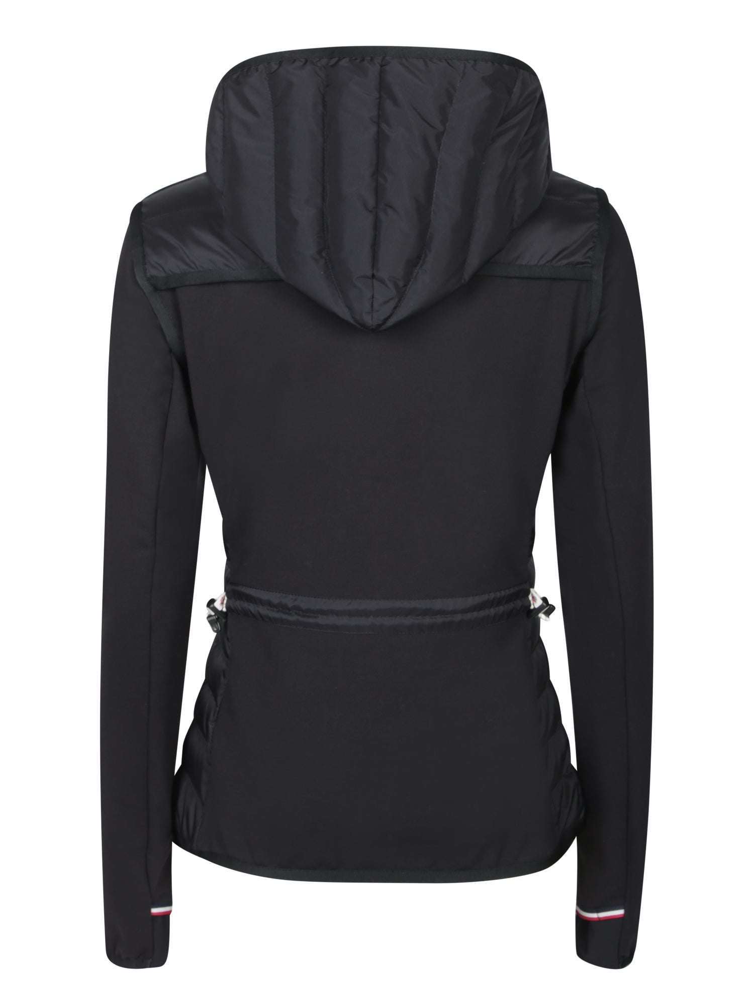 This black cardigan from Moncler Grenoble blends style and functionality, perfect for luxury activewear enthusiasts. Featuring an eye-catching design with padded body and elastic fabric sleeves, it ensures comfort and freedom of movement.